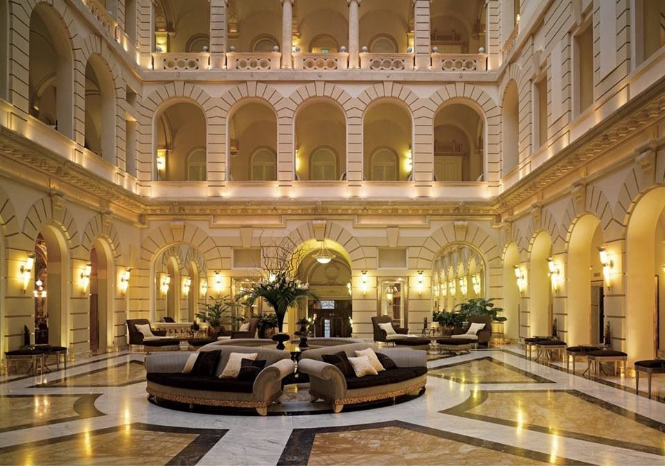 In Prague you will find the original hotel Boscolo in the luxurious building in Senovážné Square, close to the Main Railway Station. It is among the most interesting building constructions of the end of the nineteenth century, whose design was made by architect A. Wolf. Originally a bank was headquartered here, the bank safe was transformed into a luxurious bar, the hotel stands out due to its spacious lobby, which is typical for banks, but not always so for hotels. You can admire the grand interior: original wall paintings, luxury Doric pillars and a majestic staircase.