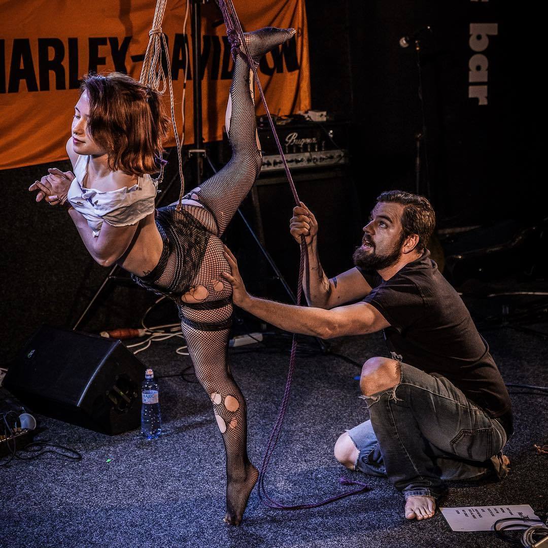 “So tying can stretch even for hours, then most often the person ends up hanged up in various positions. This requires a good fitness level of both the model and the rigger. There must also be trust and friendship between them,“