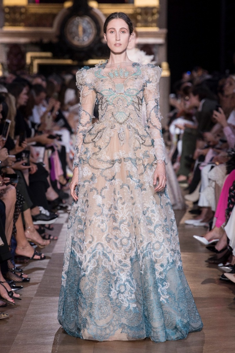 I will skip over the leopard-skin nonsense and go directly to a summary of the best. The absolute winner is the pale blue gown with elements of nudity and incredibly beautiful embroidery. It almost looks as though a bunch of butterflies had just settled onto the model’s body: simply heavenly! The fairies themselves must have embroidered this dress! It’s like a gown for Cinderella’s magical ball. Only the glass slipper is missing!