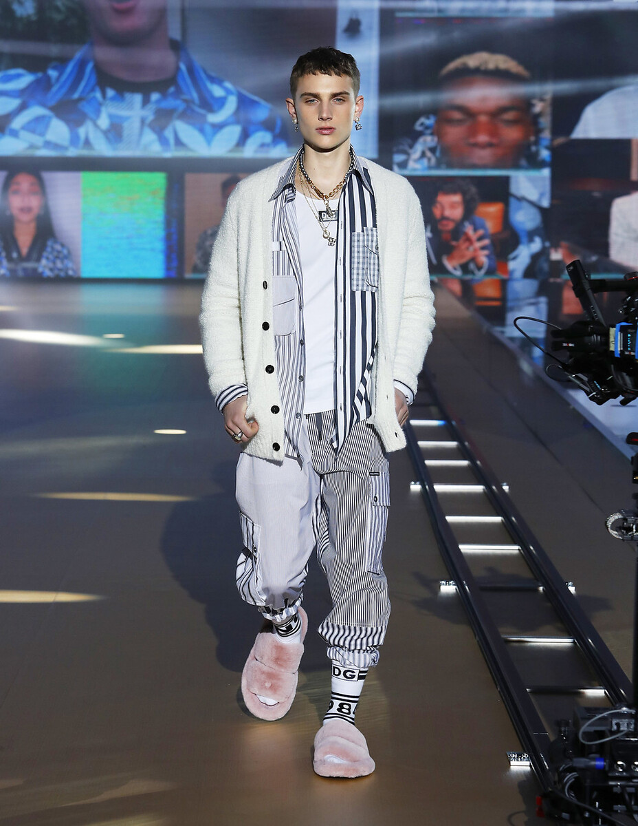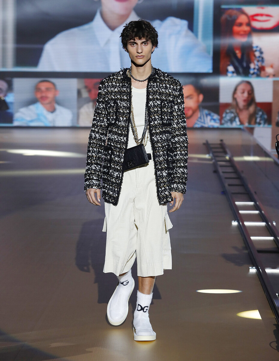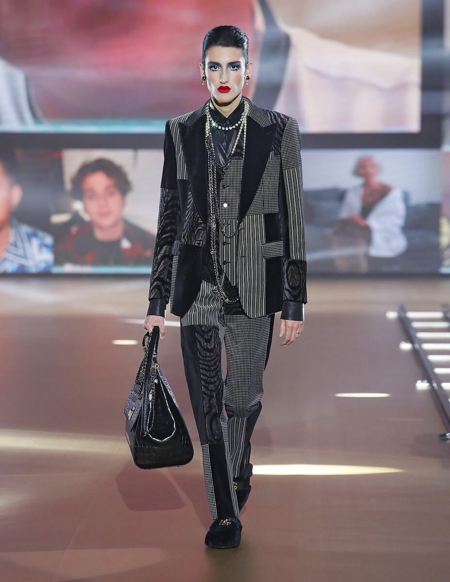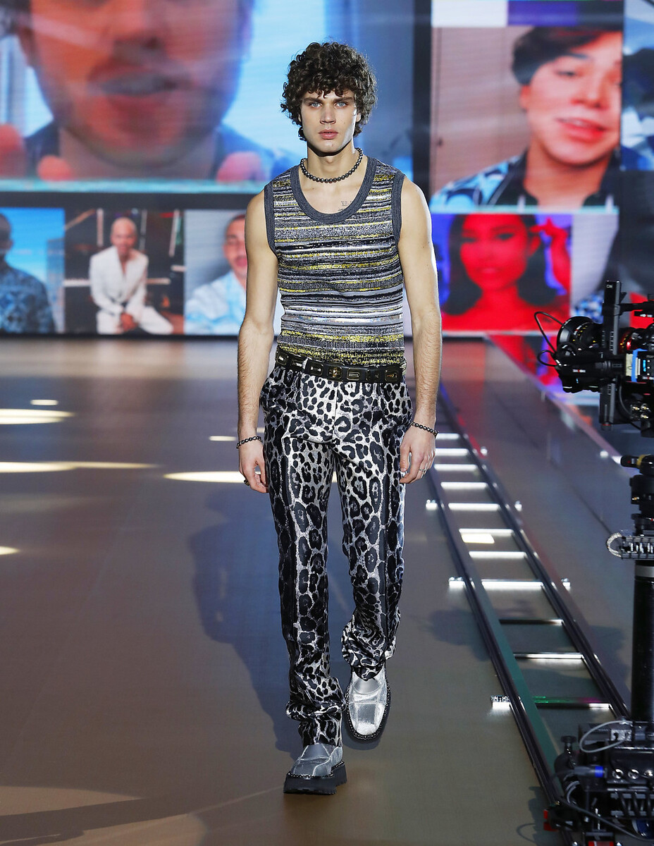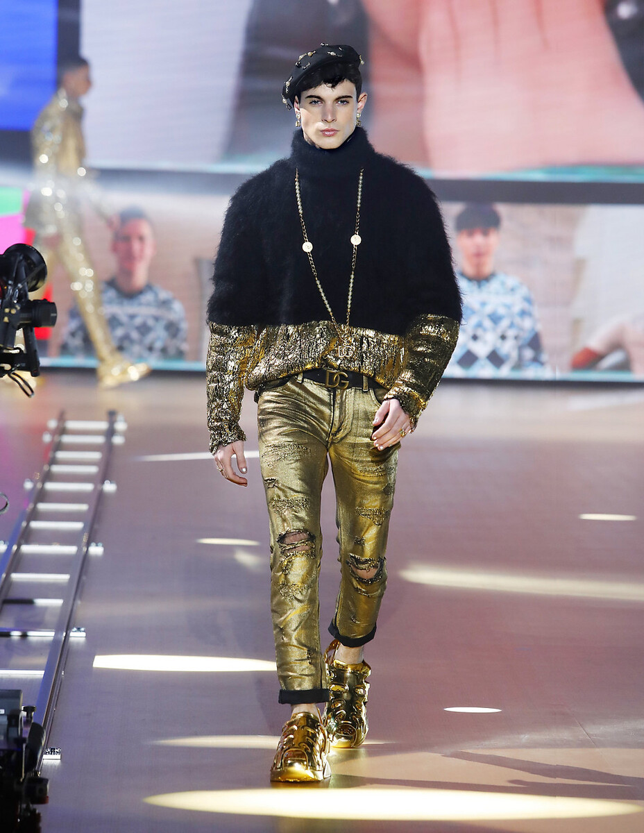 The Italian duo Domenico Dolce and Stefano Gabbana surely know how to draw attention. One day it’s sixpack-flaunting topless models, next time an Elvis Presley-themed fashion show or men in lipstick and metallic colours, draped in furs or wild animal prints. The new FW2021 collection is extravagant to the max, with intergenerational links, a mixture of styles and, above all, freedom of expression in the main role.