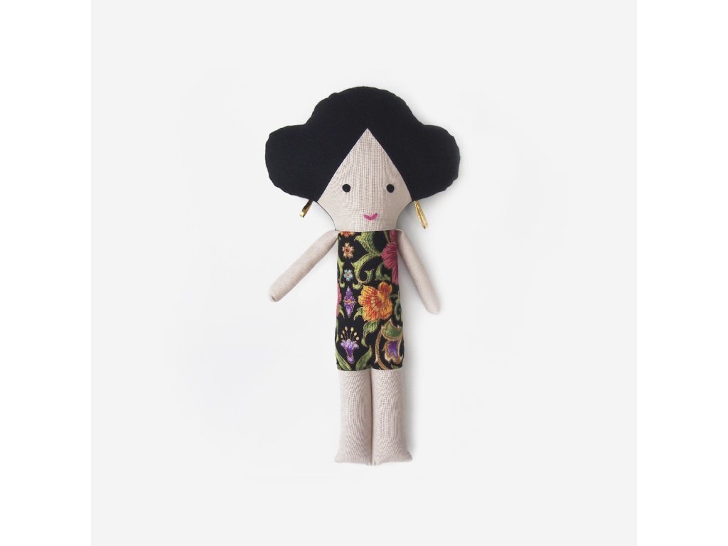 Each doll bears the characteristics of its origin. Such as skin colour, specific shape of face, but also the ornaments on the fabric. The hairstyles are always perfect, firmly holding their shape. The hands and feet are moveable. The torso is made of colourful fabrics, the luxury dolls may also be dressed according to choice. A gipsy girl, Aranka has gold earrings, the black girl Aziza then has animal-print colourful underwear and is as "dark as a bar of chocolate".