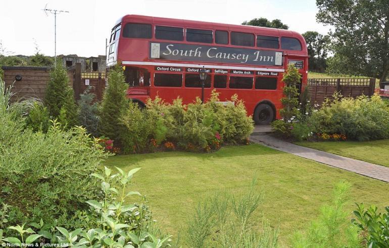 The bus was named the Trafalgar Square and is now parked in the premises of a countryside hotel, the South Causey Inn, near Beamish, Durham. The bus-hotel includes a private garden.