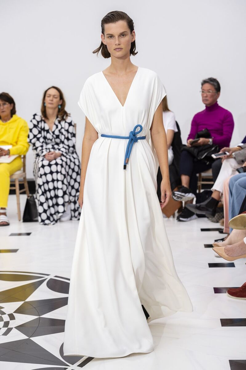 In the end there was no shock, but that doesn’t matter. I thought that the best item in the entire collection was the long white dress with the blue rope at the waist as an unusual belt. Sailor-style simplicity, something that never disappoints. This dress can be worn practically anywhere you won’t encounter small children, because you would look like the “before” picture in an advert for Persil after spending a moment in the presence of some little tots.