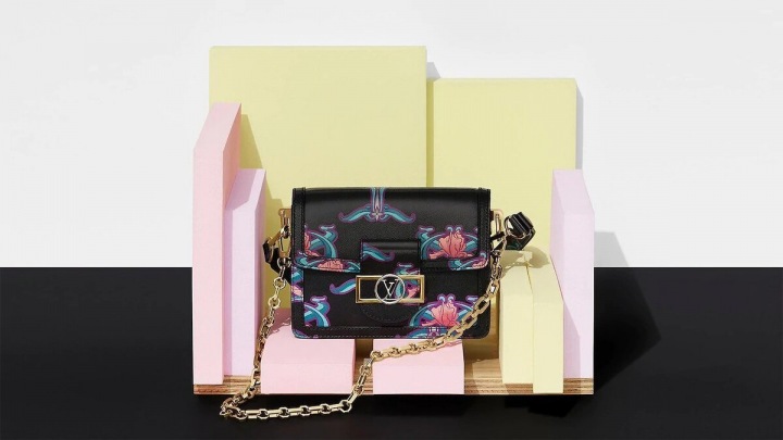 Let's move on to the next three new pieces: the Dauphine Mini decorated with flowers, a logo and a gold chain, the Vanity Monogram in the shape of a suitcase with the typical Louis Vuitton monogram and an elegant, timeless black piece not only for businesswomen, Blade.