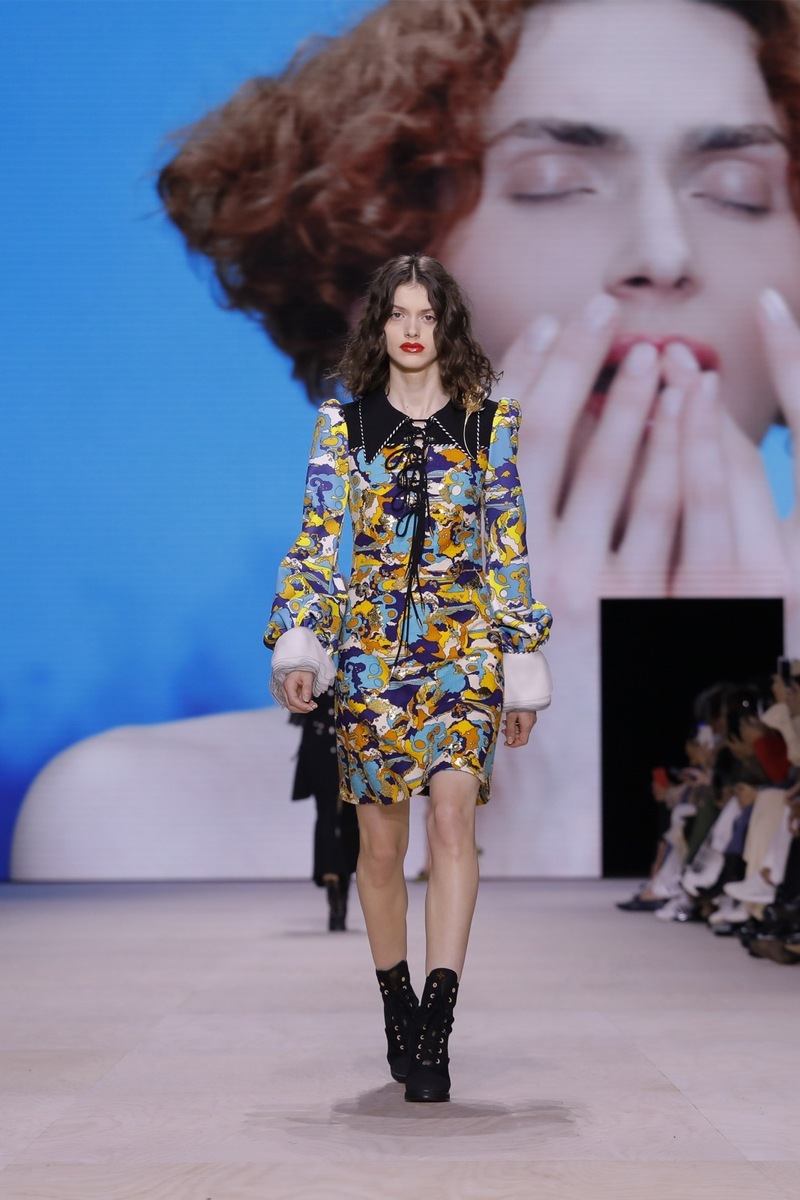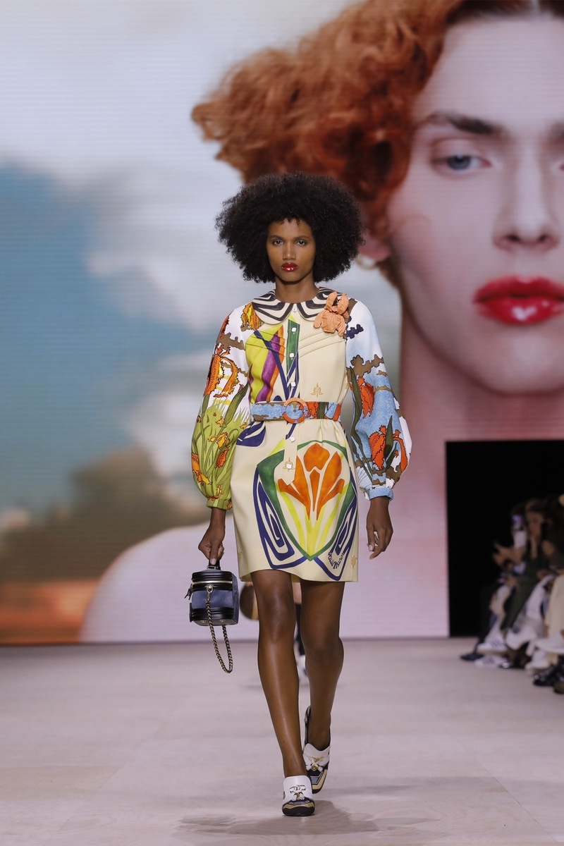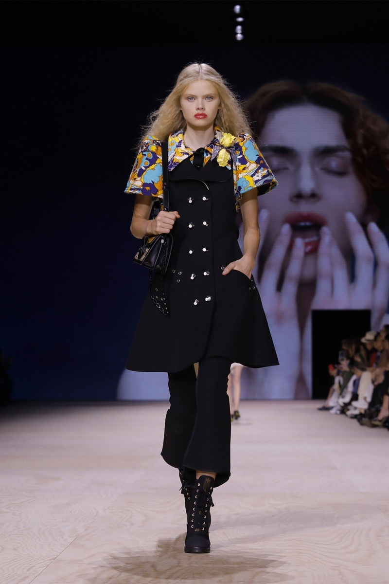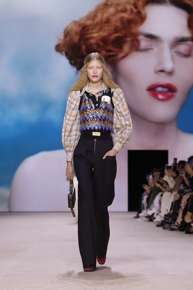 The show was dominated by a digital wall, featuring the It´s Okay To Cry video by Sophie, specially adapted for the occasion. Occasionally one's eyes would slide to the background during thr show, but Louis Vuitton's luxurious models full of colors and interesting patterns quickly brought your attention back to the catwalk.