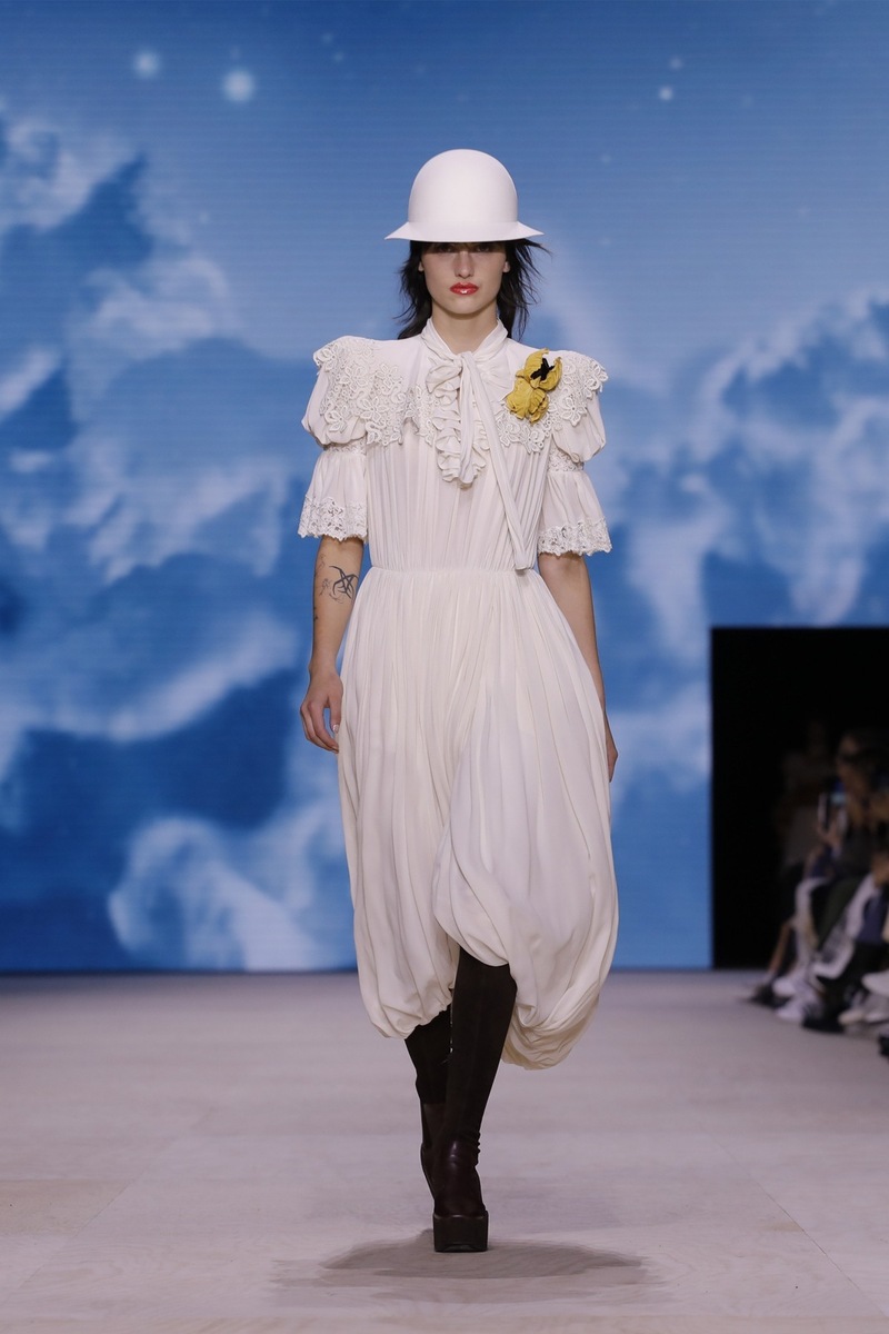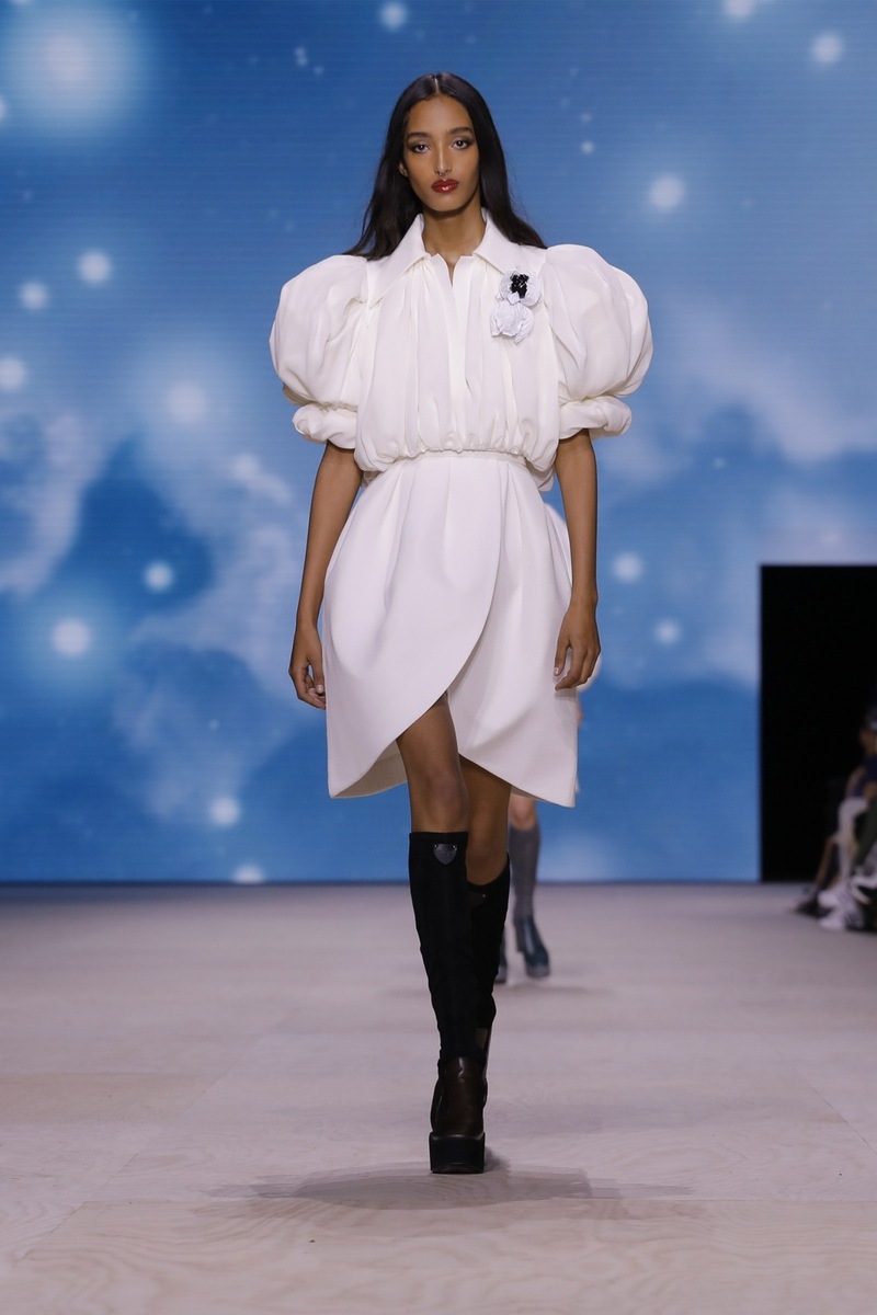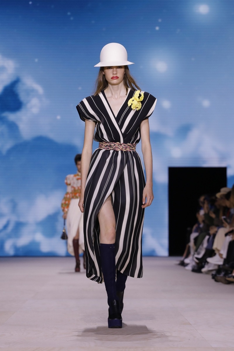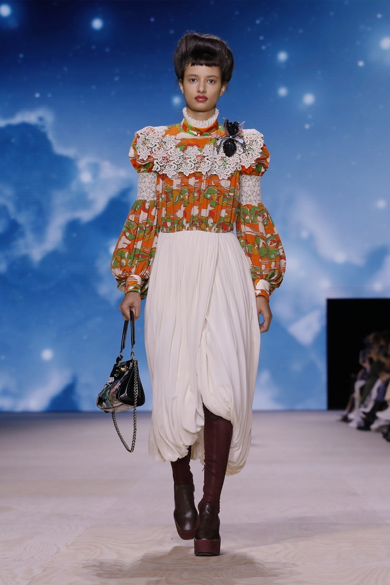 In creating the new collection, Louis Vuitton's creative director, Nicolas Ghesquière, drew inspiration from Belle Époque, the so-called carefree and beautiful period, and went back in time by more than a century. The luxurious models were therefore decorated with characteristic symbols of the era such as puffed shirt sleeves or luxury jacquard adorned with flowers.