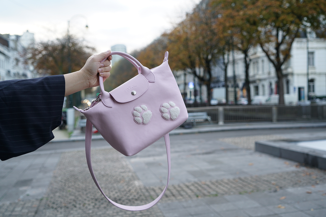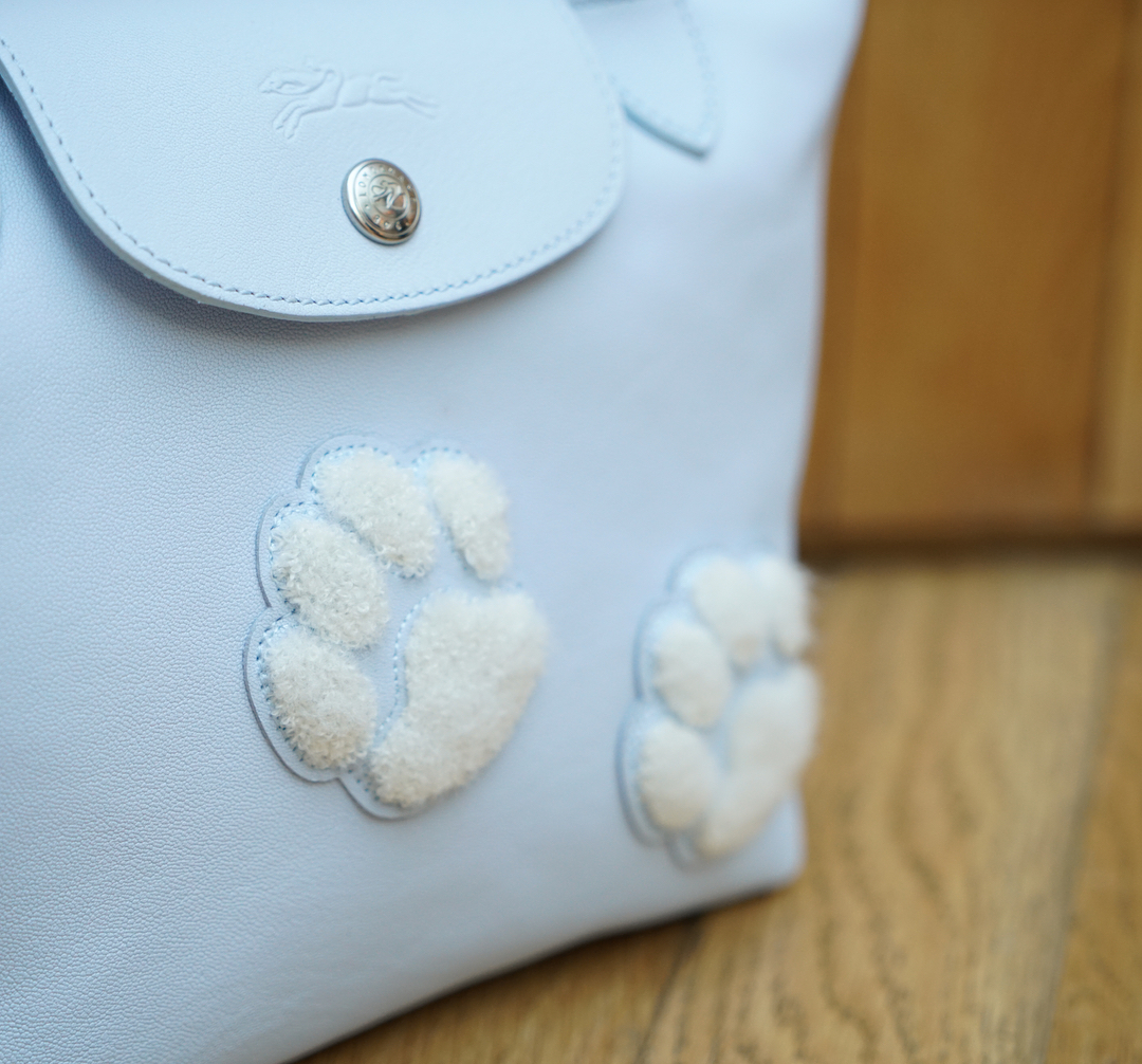 In addition, the designers created a smaller pouch for two sizes of the bags, without any decorations, that you can cleverly attach to any of the two larger models. The limited pieces Longchamp Le Pliage Cuir are adorned with cute stylised paw prints. The black model has them printed in white, while for the pastel-coloured pieces the artistic duo created them in white fur.