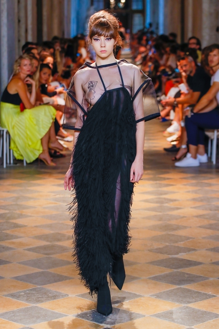The show's finale was dedicated to models where the young designer affirmed that fashion is supposed to be fun above everything else! A barefoot model or a mannequin on somebody's back? Not bad!