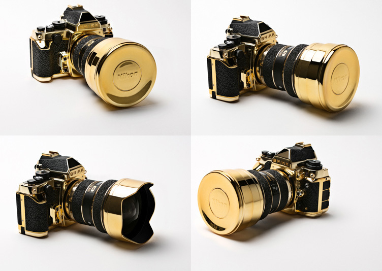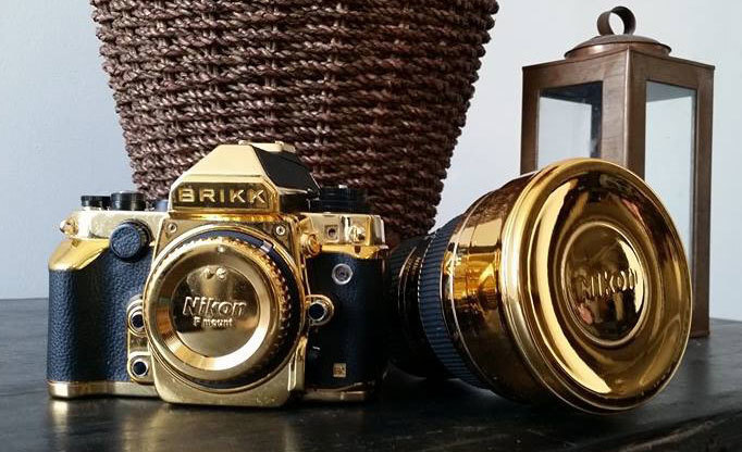 The luxurious Lux Nikon camera contains parts made of first-class 24K gold. The width of gold ranges between 4 and 5 microns. The research, development and finalization of this exquisite camera took nearly a year. The body of the camera is covered by luxurious stingray leather with gold accessories. Stingray leather was chosen due to its durability, textured surface and black color which provides stunning contrast with gold. The stunning outside of the camera hides equally exquisite optics; however, the original Nikon label was replaced by a gold desk with the BRIKK logo.