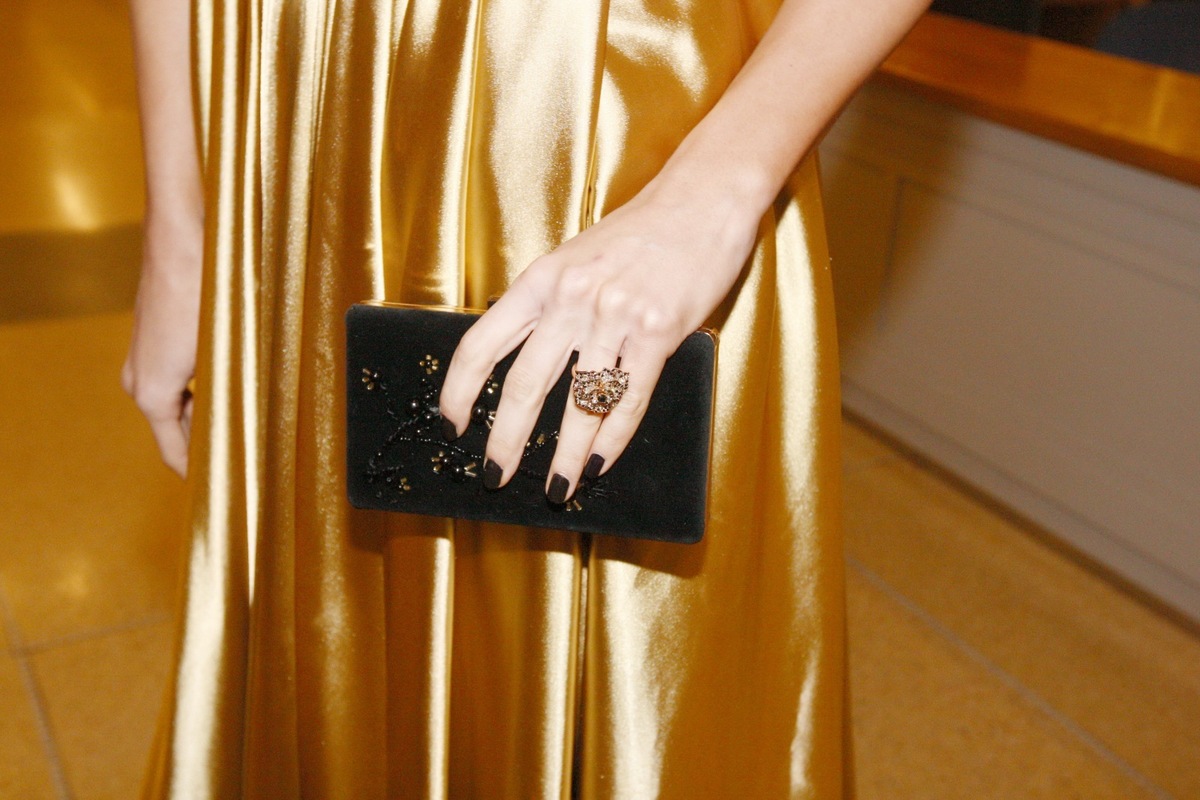 Moderator and model Inna Puhajková wore a dress by Sandra Mark. The luxurious red satin gown featured a flattering corset, sensual slit and gold belt, which highlighted Inna’s slender waist. The gold accessories are a fantastic choice. Everything here is top notch!