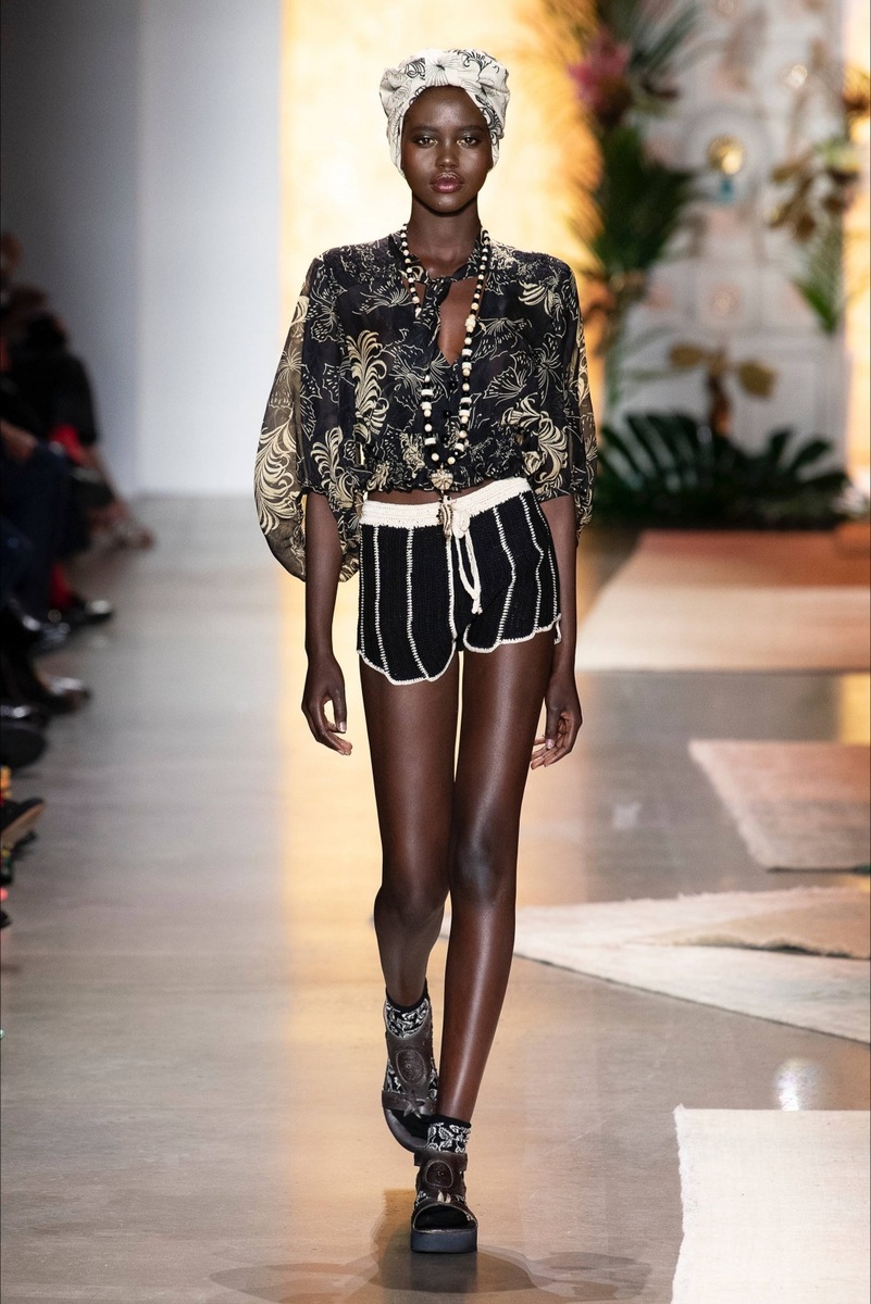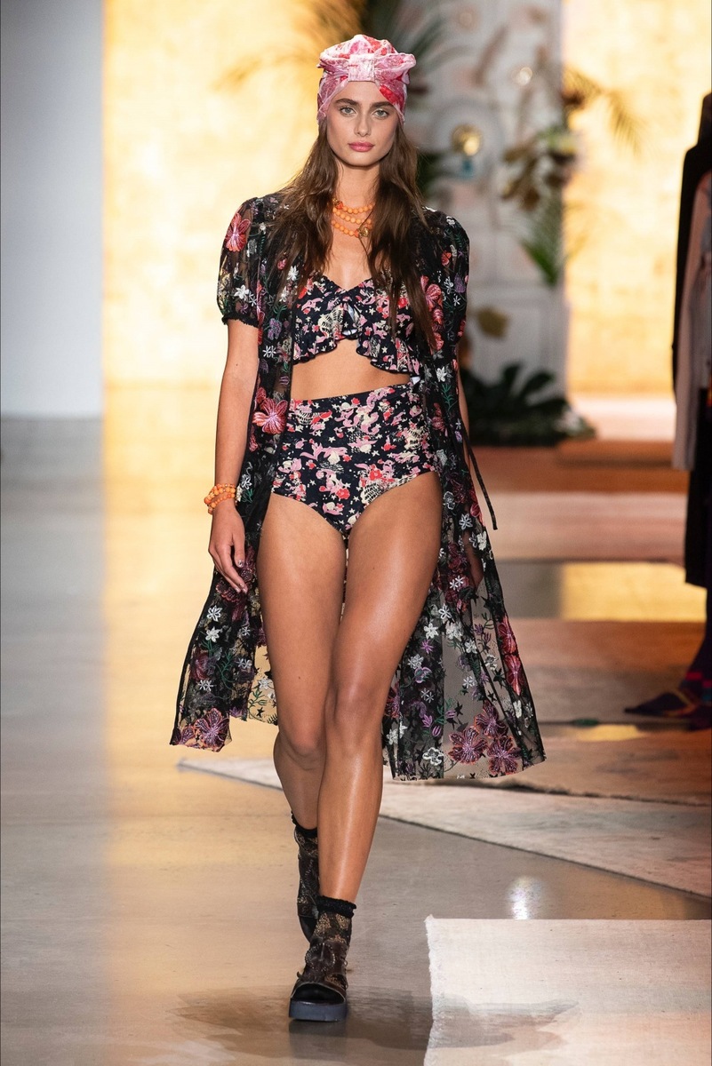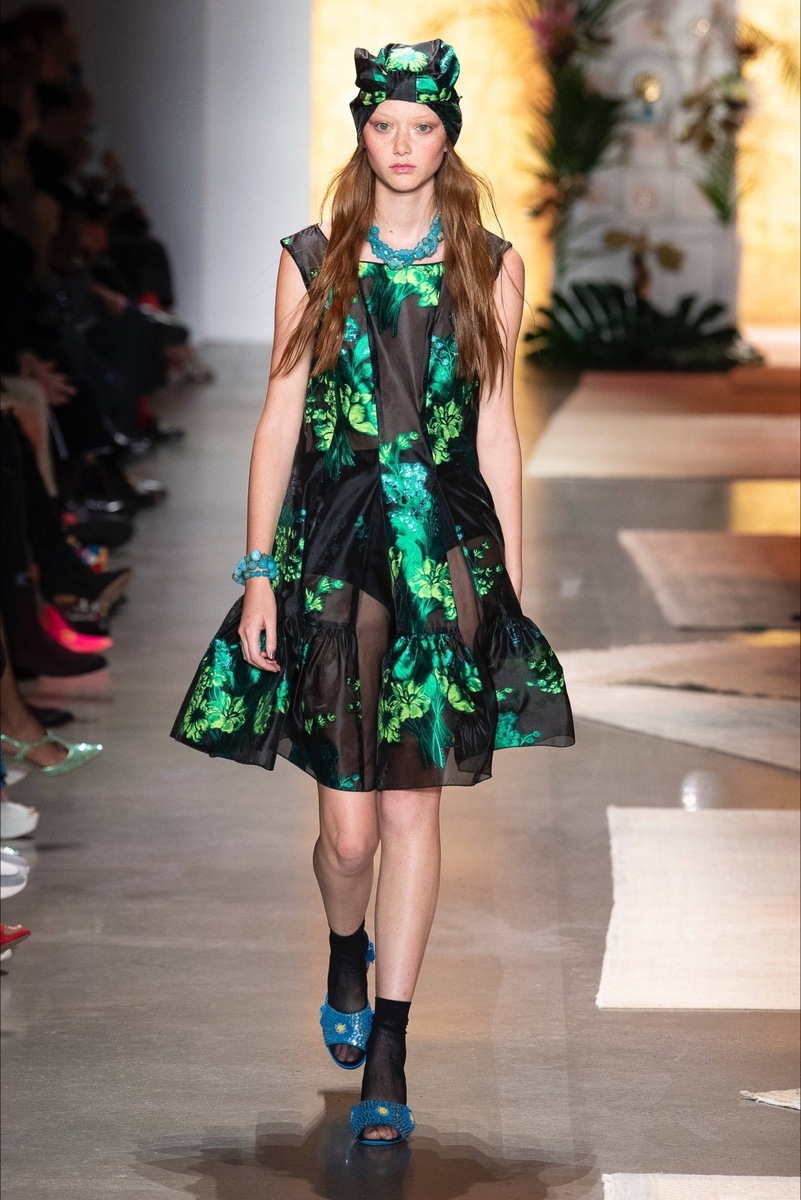 Anna created a real pop-up shop in the middle of the catwalk, which was overflowing with things from her favorite manufacturers. The models came from different directions and moved around before they came directly to the pop-up. It was obvious from the outfits that the designer had perfectly played with the SS19 collection. It mixes several styles, but most of them are Japanese and bohemian. The show was opened by the beautiful Gigi Hadid in a magical black dress with red flowers in which she looked like a lovely Japanese princess.