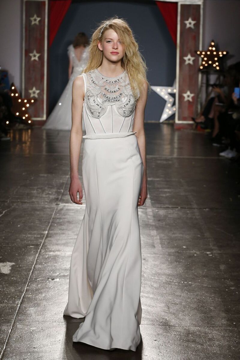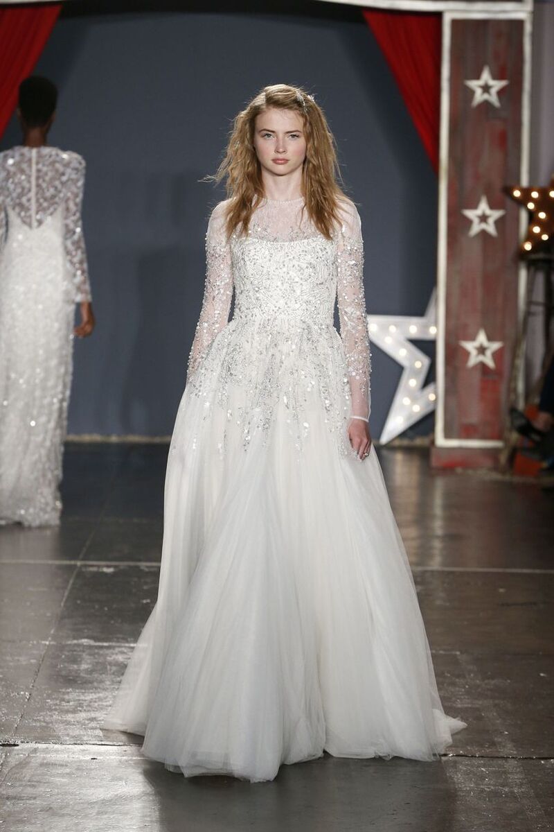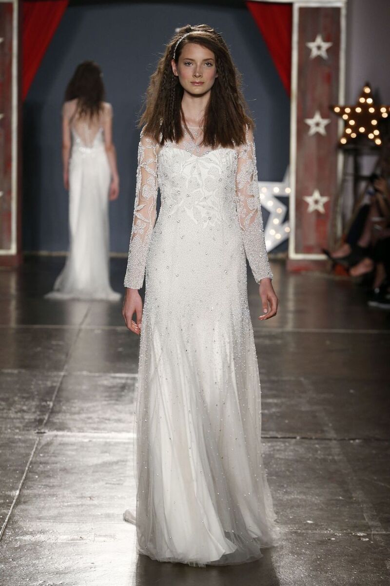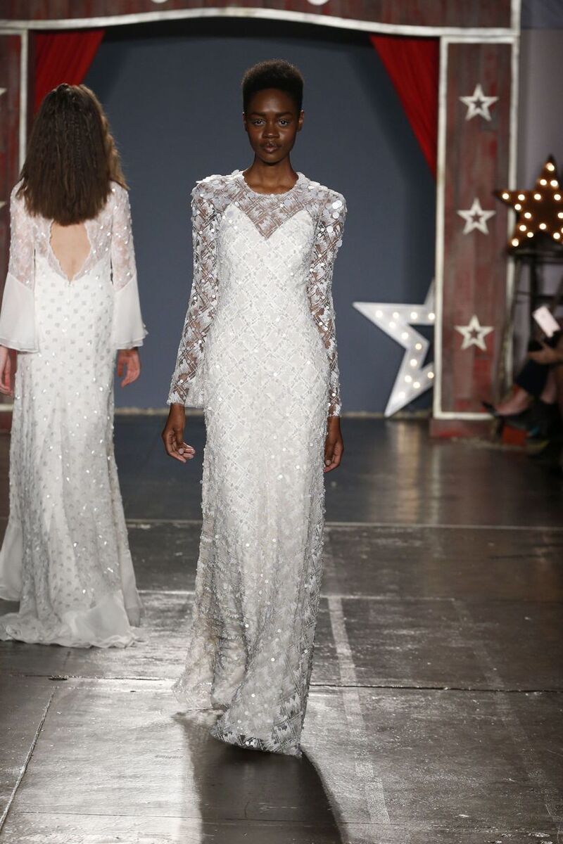 The latest S/S 18 collection of wedding gowns by designer Jenny Packham consists of thirty-five stunning dresses which literally take your breath away. Most of them are embellished with delicate or bold crystals, in which you will stand out.