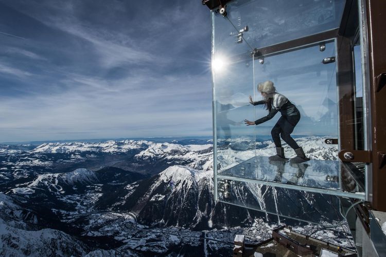 The Aiguille du Midi is a mountain that offers breathtaking views of Mont Blanc. Another challenge is the transparence of the luxurious glass cage with its incredible vista.