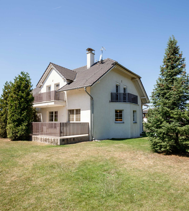 Firstly for you, we have prepared a 6 + 1 family house with a usable area of 300 m². It is surrounded by a large garden of 1,000 m², offering plenty of privacy and space to relax. The property is located in a quiet part of Průhonice, just a few minutes from the village center and a walkable entrance to the popular Průhonice Park. The interior of the house is designed with emphasis on practicality as well as comfort. On the ground floor there is a fully equipped kitchen, two living rooms with a fireplace (one with access to the terrace), a bedroom, and a bathroom with either a bathtub or shower. The set of rooms in the attic includes four bedrooms, a second bathroom, and a separate toilet. The house comprises a utility room, a laundry, and a double garage. There is also a security system in place, installations for TV / SAT and gas heating. Currently, the interior is being refreshed with painting and kitchen renovation. The house will be ready to move in from September 2025.