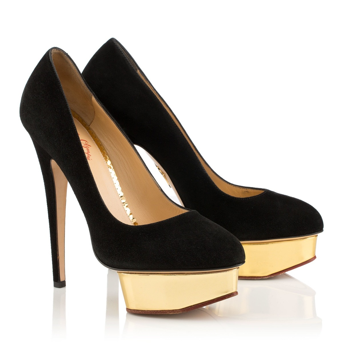 If you are looking for something a littler simpler to complete your outfit, but something that is not to ordinary, why not try black pumps from Dior with an interesting red heart appliqué or the black Douce Du Desert shoes from Christian Louboutin, with a distinctive ribbon around the ankle? Simple black with distinctive details will make sure you stand out from the crowd!