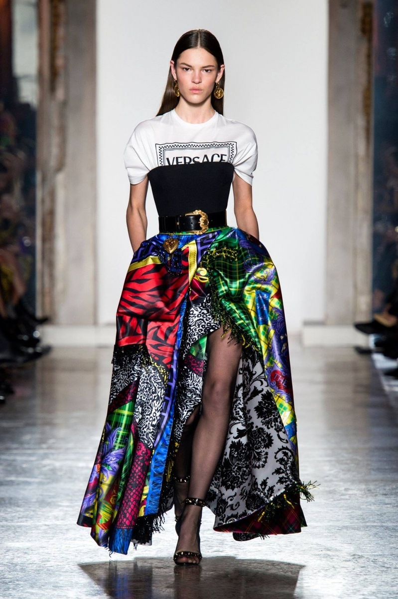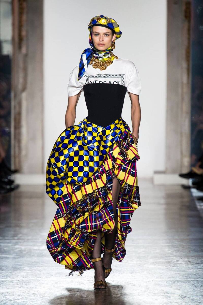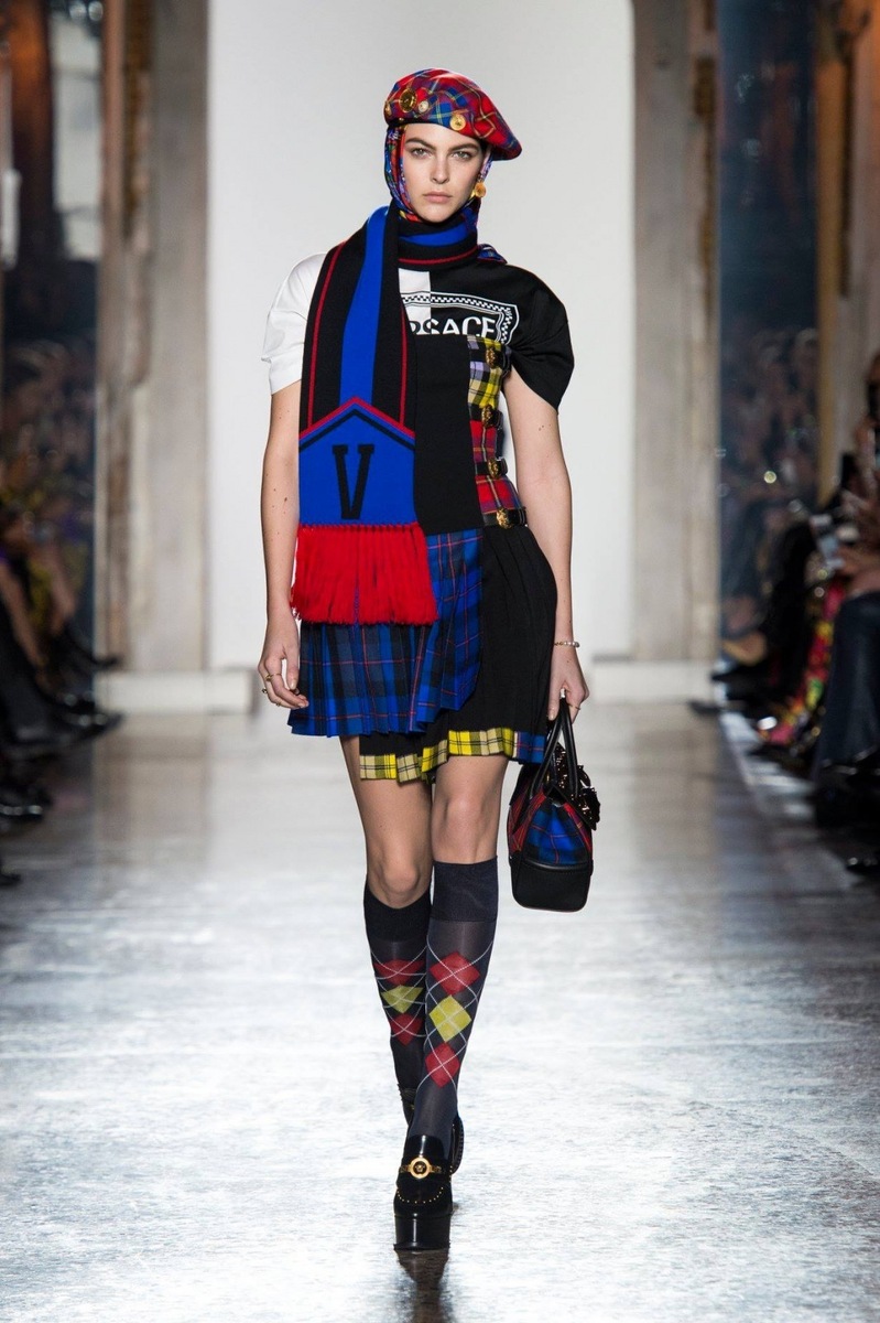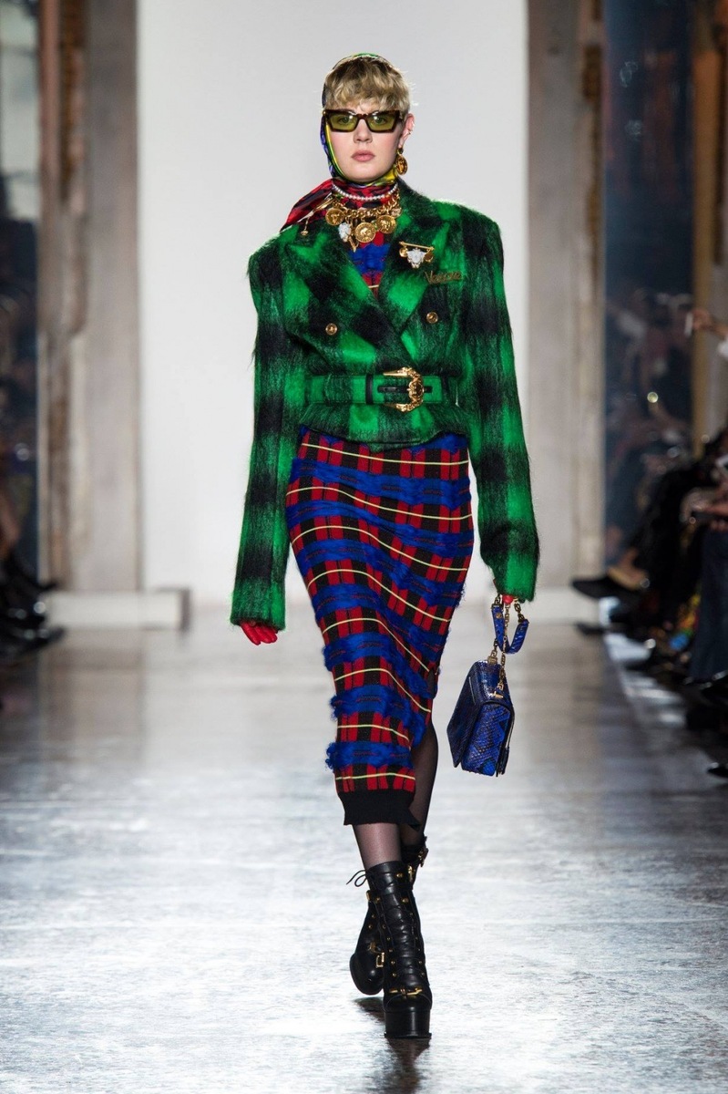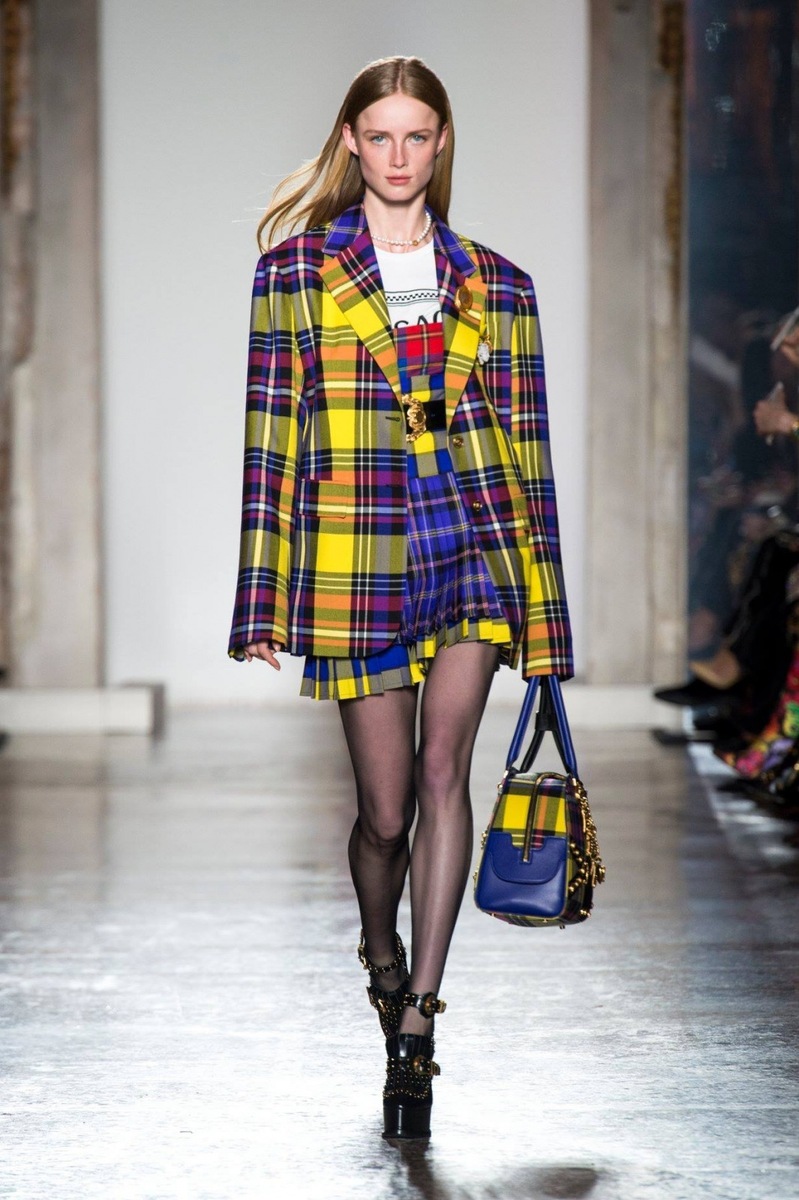 If you want to stand out from the crowd, be chic and stylish, then the Versace luxury collection is for you! The fashionable check in neon colour in combination with purple looks exclusive. Some outfits are reminiscent of the ´naughty schoolgirl´ style that charges us with a strong and vibrant energy and that is precisely why we like it. The high-waisted skirt with a belt or pockets and asymmetric cut, accompanied by knee-high socks or berets are the ideal outfit for the autumn or winter weather. The luxurious patterns with various details, such as a metal trim or tassels, will turn any girl or woman into an amazing diva.