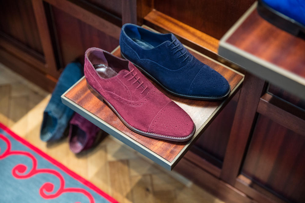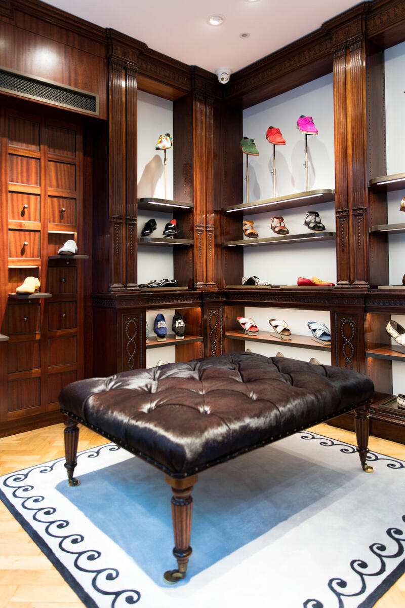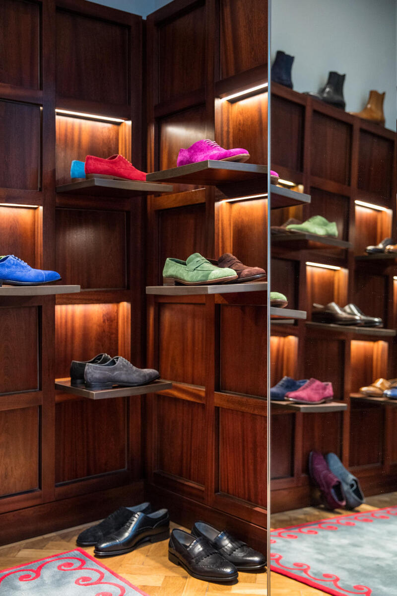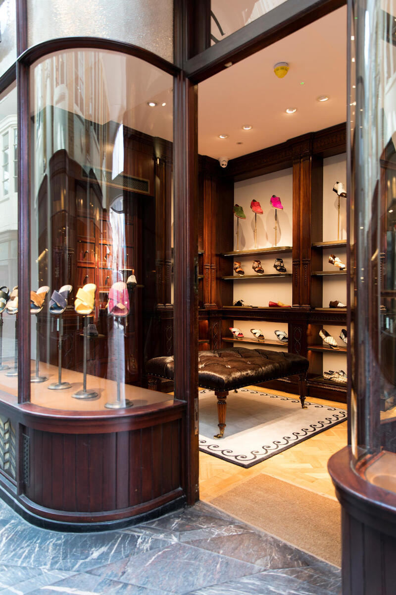 The men’s three-storey boutique is located next to the women’s branch in the shopping centre Burlington Arcade, which lies in the heart of the Mayfair district. The boutique is distinguished by its unique selection of designer shoes, but also by its interior. The mahogany wood and neutral natural tones bestow the feeling of character, luxury and homeliness.