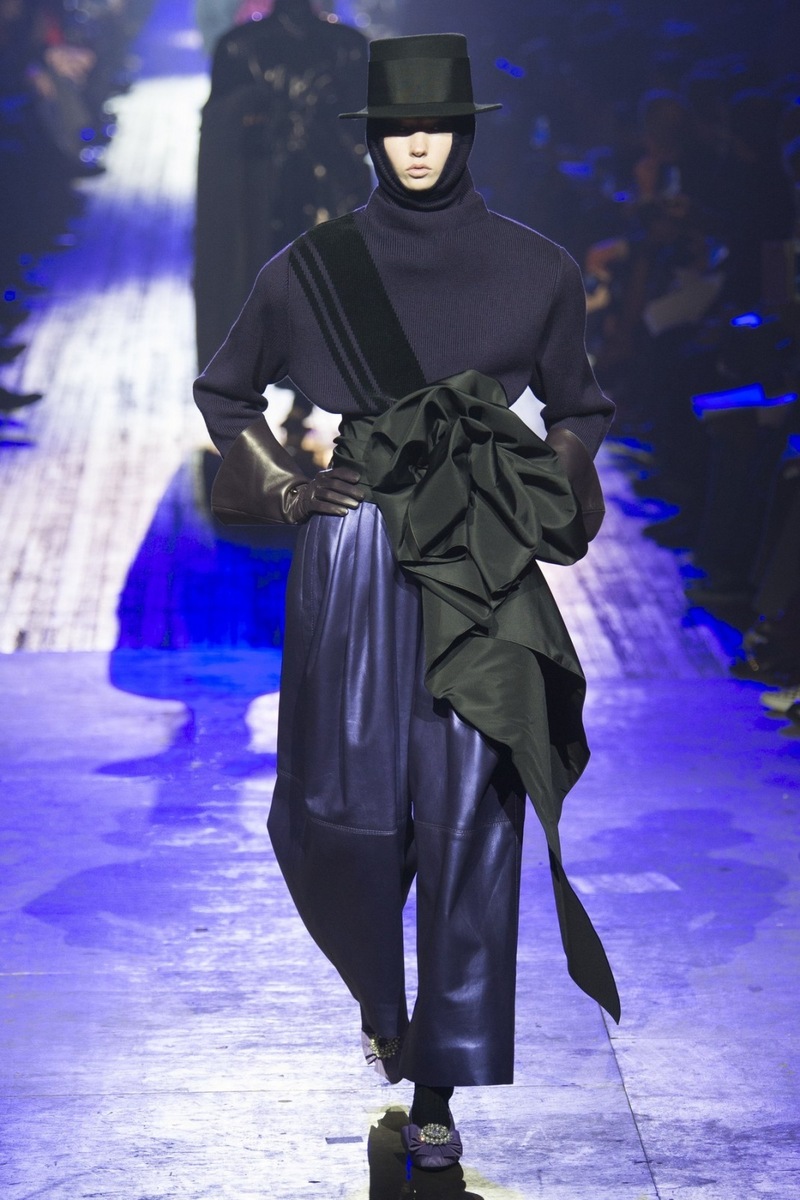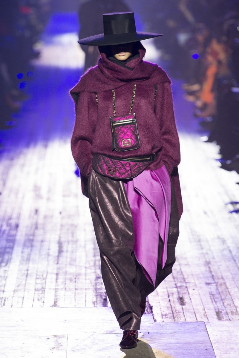 The FW 2018 collection used several colour combinations at the same time. The bolder, lush colours included red, blue, yellow, and of course the colour of the year, which adorns most of the fashion pieces from the collection. At first glance your attention will be caught by the fashionable oversize jackets, which are truly huge, dominated by large, broad shoulders. They appeared on the catwalk in combination with great scarves, adding even more to their volume.