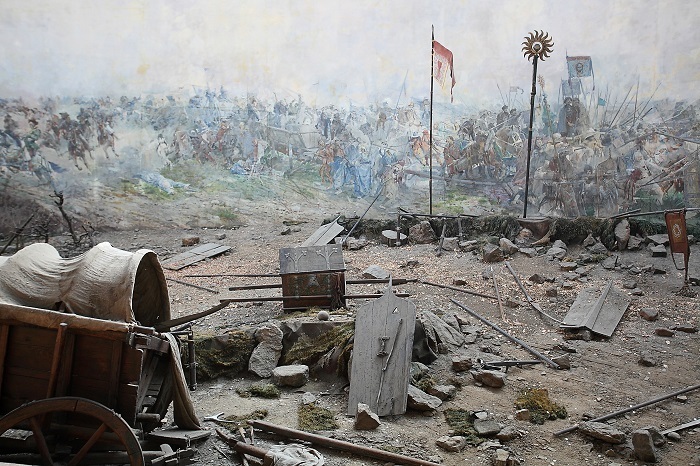 The work captures a decisive battle in 1434 between the Hussite armies. The canvas is circular, blending into three-dimensional wartime decorations. You can admire replicas of period weapons and also other military items from that time. The whole atmosphere really does come across as almost strangely realistic.