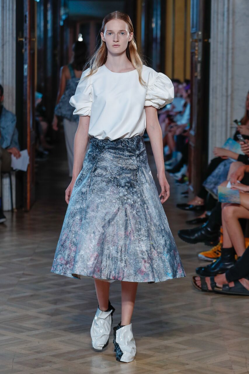 The designer returned to his popular oil-painting canvas also in case of his SS19 collection. However, there were newly-added natural materials in the form of luxury silk, lace, cotton and faux leather, which lend the models the hallmark of casual wear and light commercialism. We are therefore not looking at any wild creations but rather tender romance.