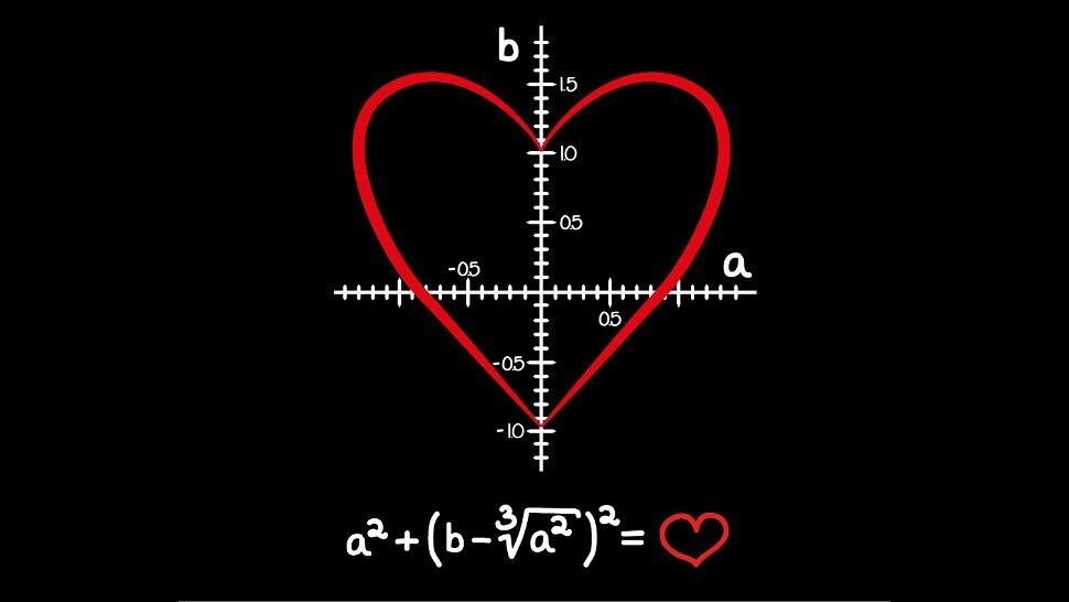 Although this function (or equation, if you wish) seems to a mere mortal to be only a tangle of letters and numbers, in the end you arrive at something that, when displayed as a graph, shows a luxurious shape heart!