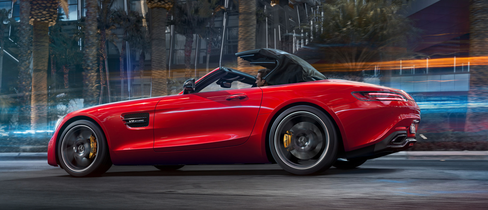 A number of Roadster sports cars is proud of the fact that the new version of Mercedes-AMG GT S Roadster is driven by a four-litre twin turbocharger V8 with 515 horsepower with torque of 670 Nm. The luxury car is designed with less weight, but maximum power. The new vehicle boasts seven-speed transmission Speedshift DCT which is standard for all AMG GT models.