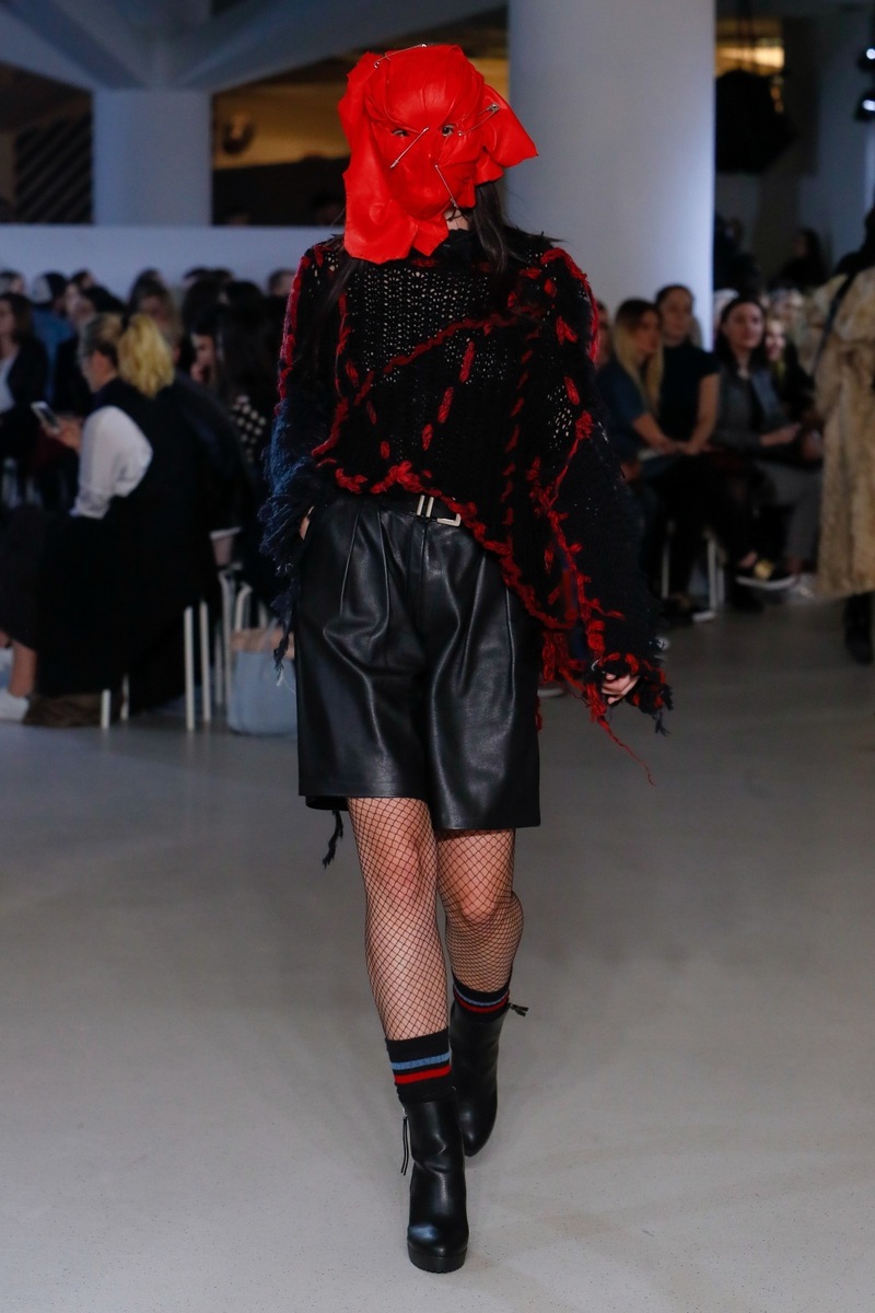 Situationist presented a range of pieces dominated by skinny trousers contrasted by wide and long jackets and coats with very daring necklines. The frequently interesting tailoring alternated with simple and classic pieces. Leather as the primary material managed to uplift certain items, while others seemed weighed down by it.