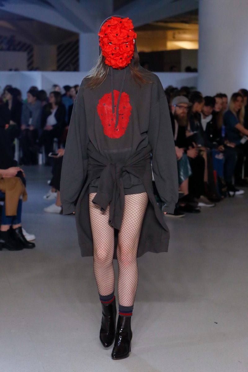 Lukáš Macháček mainly focusses on men’s fashion, but the ladies weren’t disappointed this time. In addition to the actual pieces, which married street fashion and punk, we were struck by the “camouflage” worn by the models, whose faces were rendered invisible. We consider the combination of designs on the clothing and masks on the faces, which bore a recurring symbol, to be very original. Unfortunately, the great masks drew so much attention that sometimes the actual clothing remained in the background.