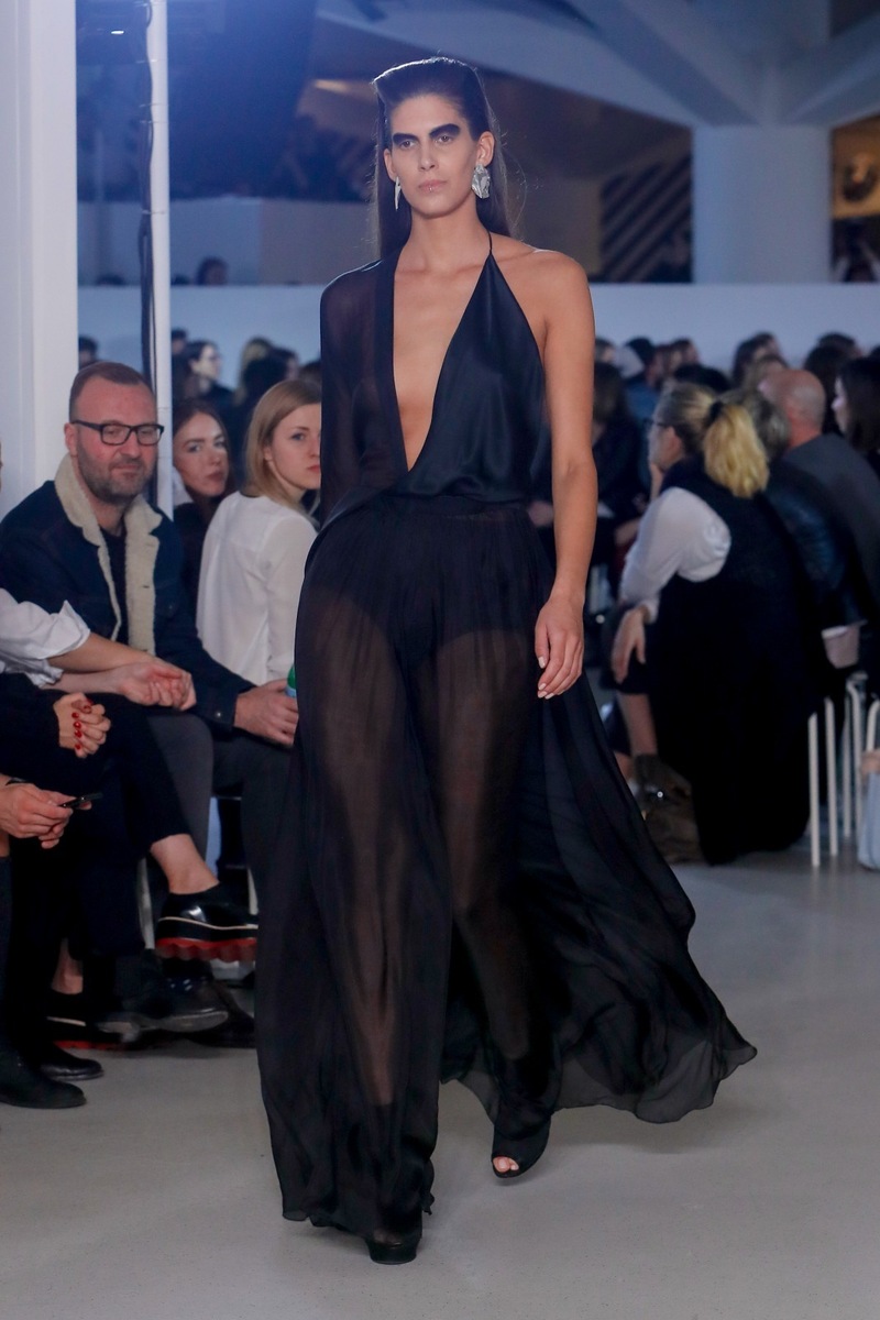 Michael Kovacik presented a collection in which the strong influence of the Saint Laurent luxury brand is very apparent. It featured black and silver and a predominance of shiny materials. To what extent was fashion designer Kovacik inspired, and to what extent is it merely a coincidental similarity?