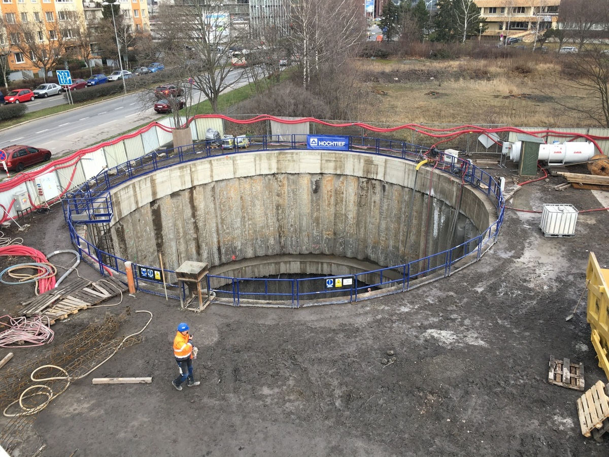 So far it sounds like a sci-fi scenario, because up to this pooint, the workers have excavated only three meters of the first tunnel between the stations Pankrác and Olbrachtova. It is nine meters high and 5.5 meters wide. However, seven years is a long time and state-of the-art-technology has been deployed for this contract, including a tower crane with the largest rated capacity. It is visible from afar from all directions.