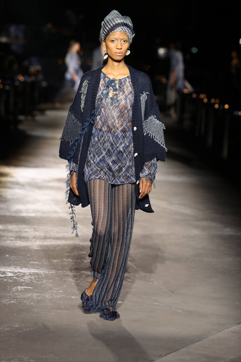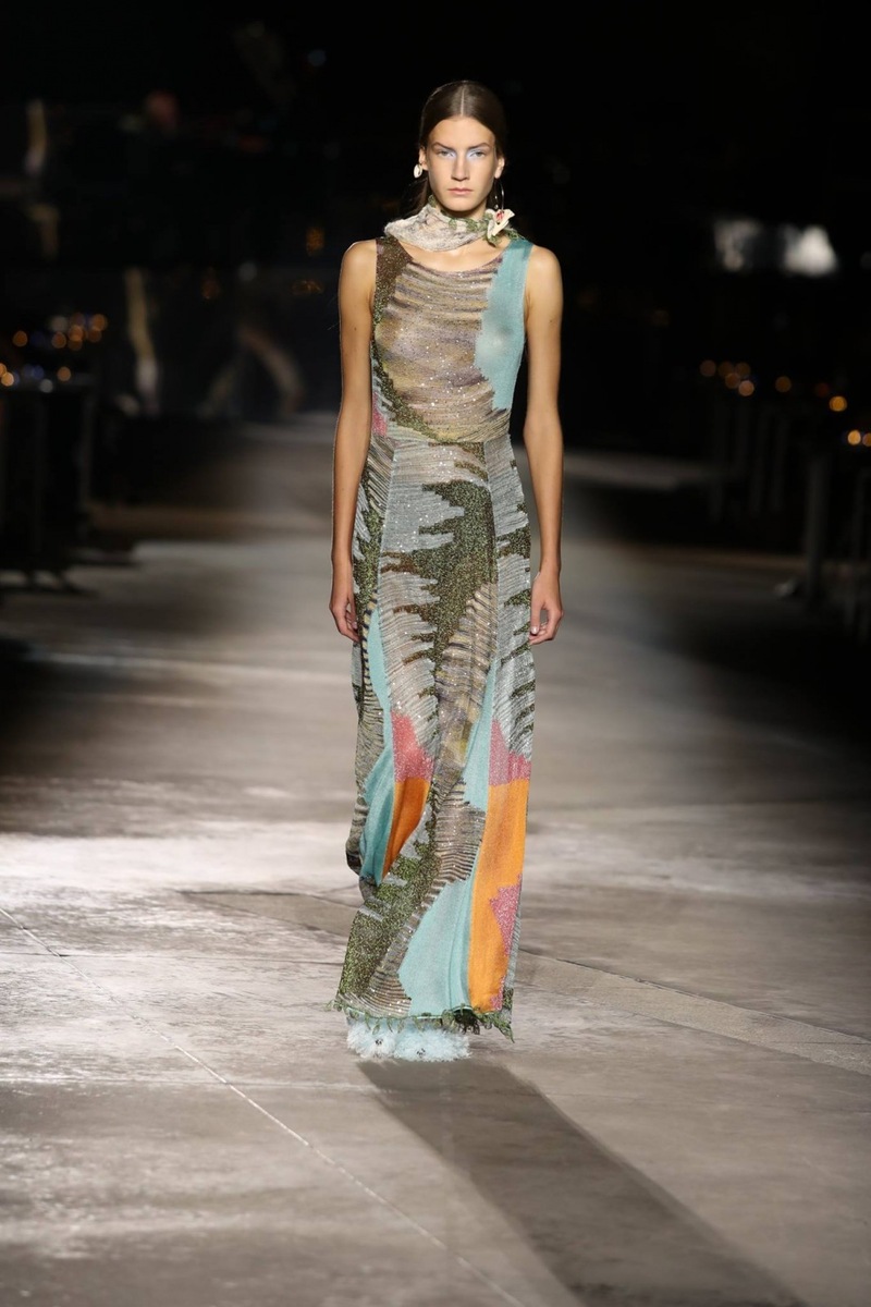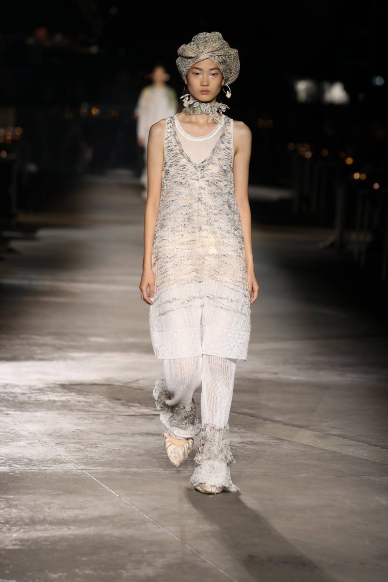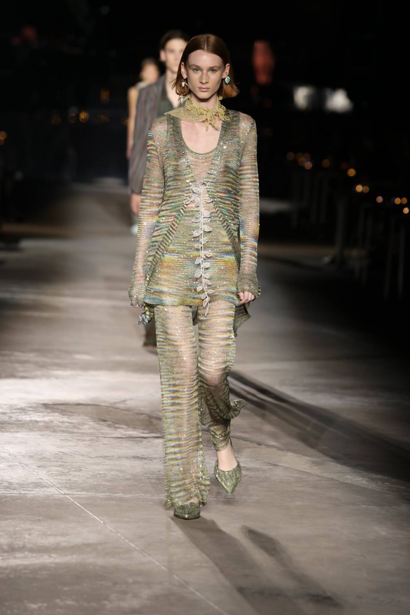 The Missoni fashion brand is famous for its beautiful turbans, which are used as an accessory to achieve the perfect look. And they also made an appearance at this show, even though they were used to enhance only some outfits. And if a scarf was not wound around the model’s head, it was around her neck.