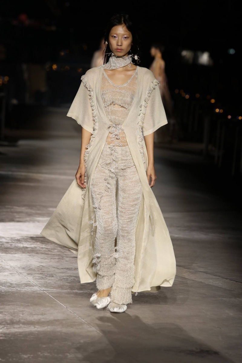 The SS19 collection consists of light fabrics, which go perfectly with nature. White, beige, light green, those are the colours that surround us. The clothes were very light, sometimes even a little transparent and looked luxurious on the models. Most of them were also embellished with an abundance of romantic ruffles, which gave them a special flair. As well as light colours, the collection also included navy blue and denim. And Missoni is not afraid of layering either: dresses are worn over trousers, with an anorak, blazer or jacket on top.