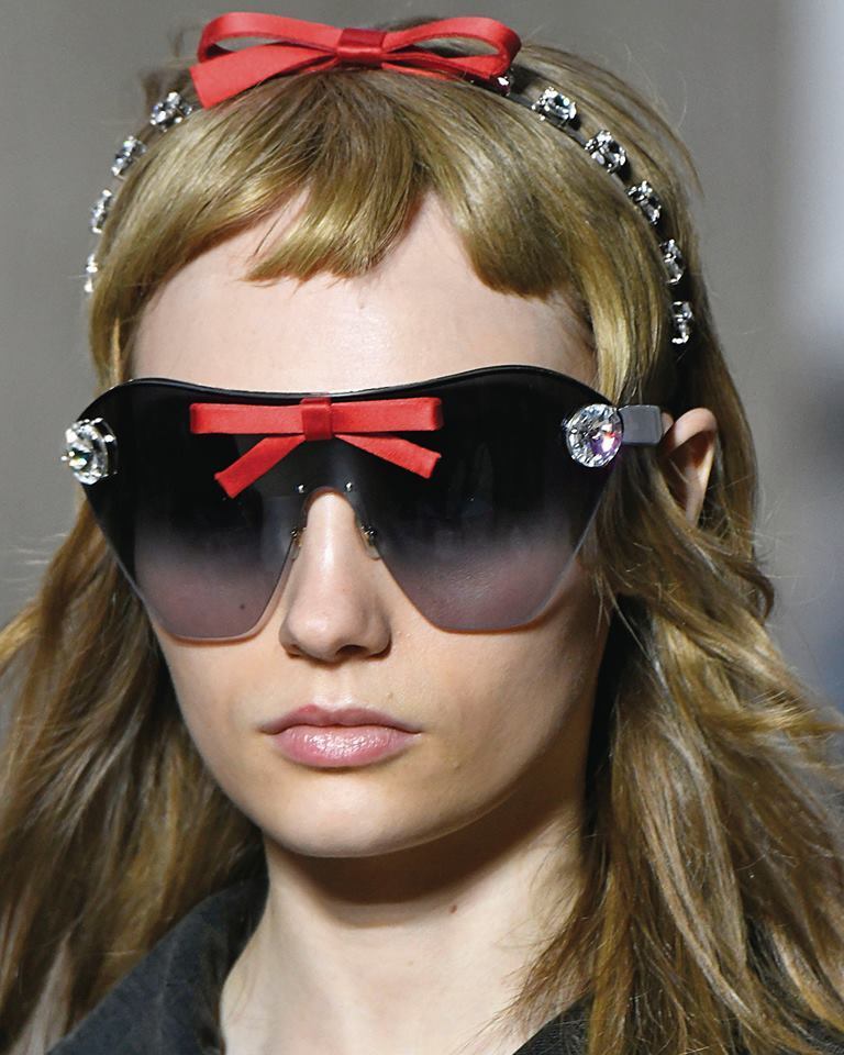 In addition to this extravagant footwear, a collection of glittering accessories in the form of necklaces with crystal fringes, distinctive earrings, and headbands with a slightly infantile bow appeared on the catwalk of the Paris fashion.