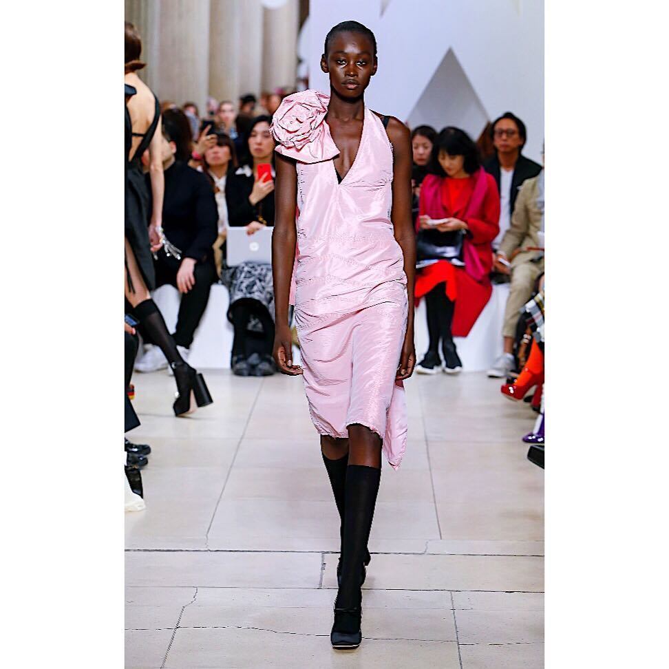 Thick chains, shoes with stones, floral applications, somewhat similar to the Chanel SS19, don't you think? But unlike this one, Karl Lagerfeld fine-tuned his to the slightest detail. For example, the salmon leather jacket combined with a mini bow on his head and white knee-socks. I just feel like I'm sitting in the middle of a Japanese funfair. So in my opinion, really DO NOT WEAR IT!