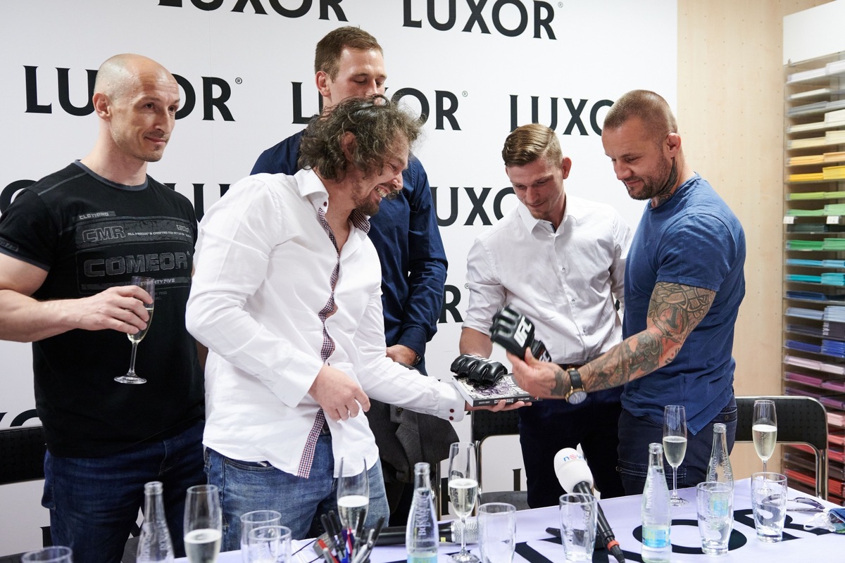 Daniel Barták commented. By the way, he chose an unconventional concept of a book launch. Someone had allegedly told him that pouring champagne on a book was gross, so the masters of their art tapped the book with gloves that had contributed to David Dvořák's victory in the UFC-led match instead.