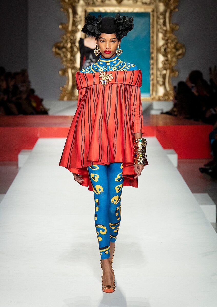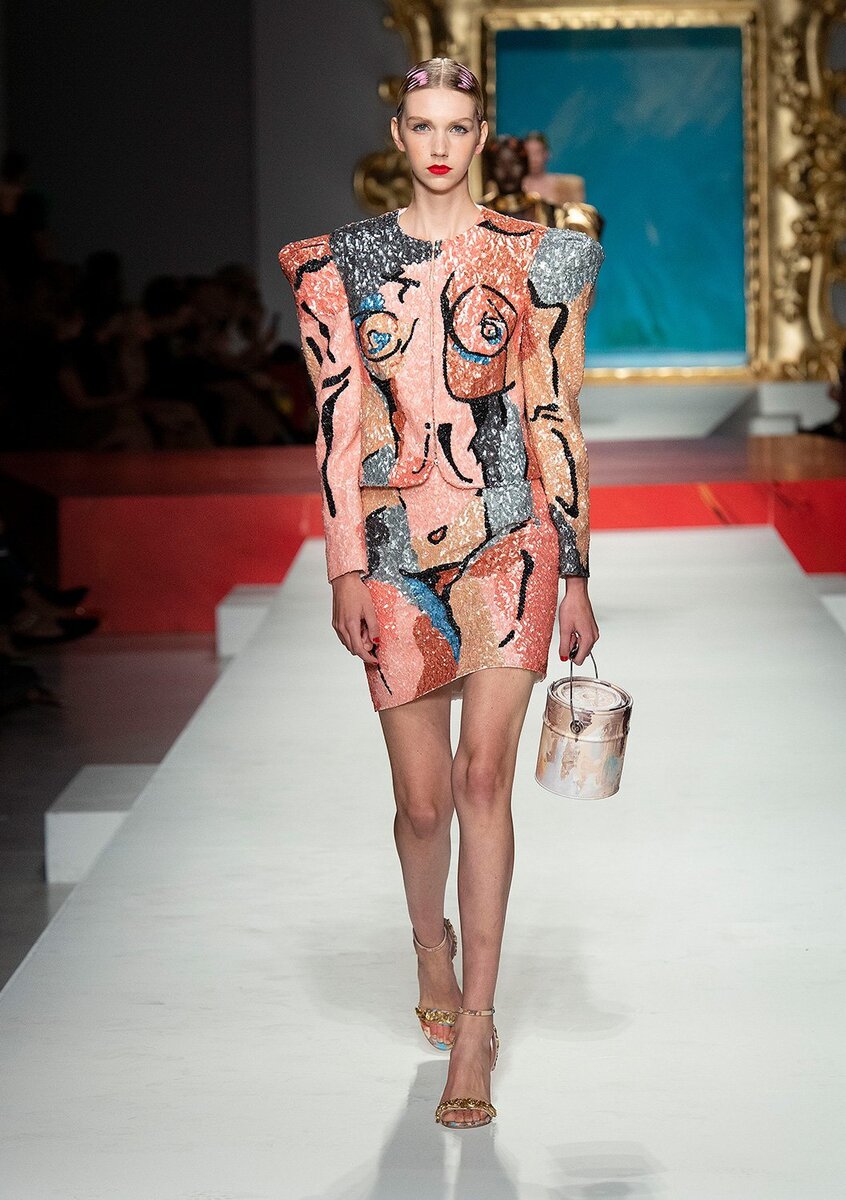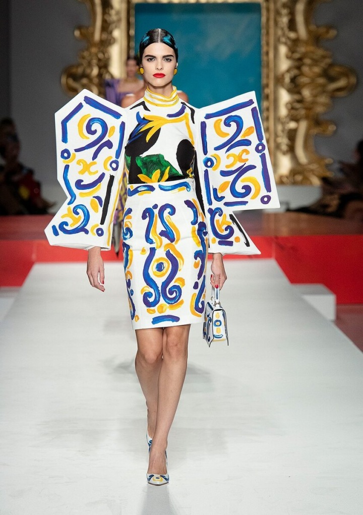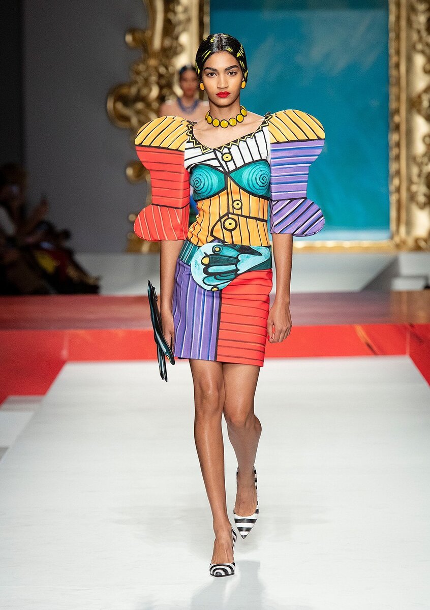 Moschino is renowned for his eclectic colors and patterns, but this smells of Impressionism already! As if I saw Picasso embodied, right? A hard-to-wear outfit, although I thought the same of the Barbie collection and what a success it was. Anyway, I enjoy watching similar works of art on the world runway, but I can't really imagine to wear them in reality. Well, on purpose, what would be the reaction of people to someone who goes shopping like this. In recent years, most designers have focused on sustainable fashion, and this is more of a waste of material that will never be worn more than once.