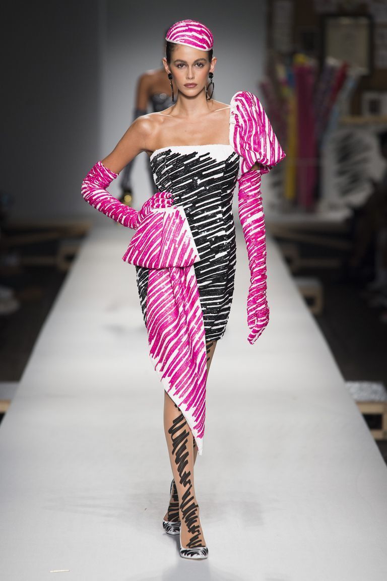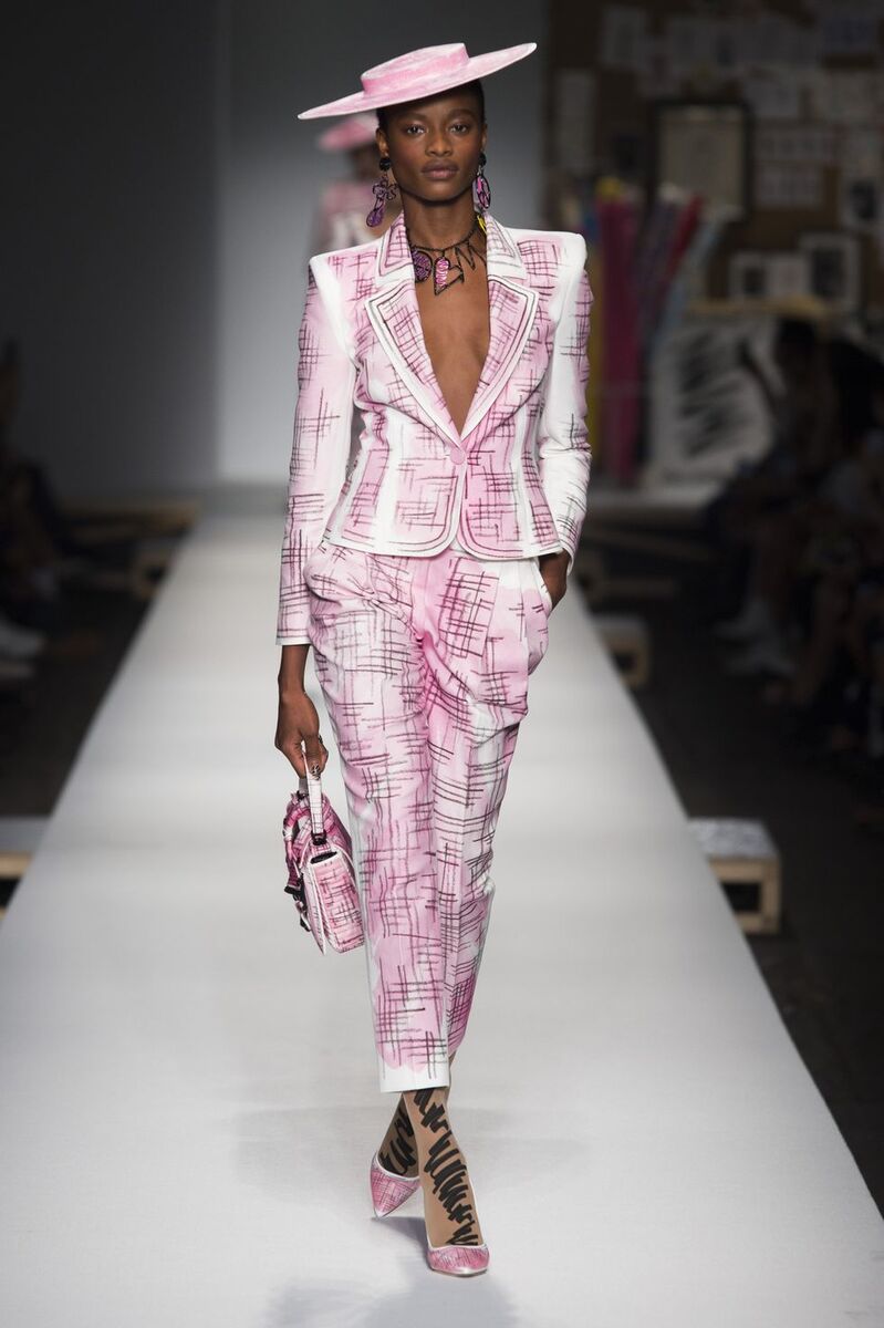 The entire show of the Moschino fashion house was carried in a luxurious painter´s style. All around there were painted-on canvases, rolls of fabric and other fabrics which Jeremy uses in his designs. And that is how most models from the SS19 luxury collection looked like, painted on, with the models looking like sketches freely drawn on paper. However, thanks to the luxurious cuts they looked absolutely amazing and reminded us of the film Pretty Woman when Julia Roberts strolled along the street in a hat and a close-fitting elegant suit.