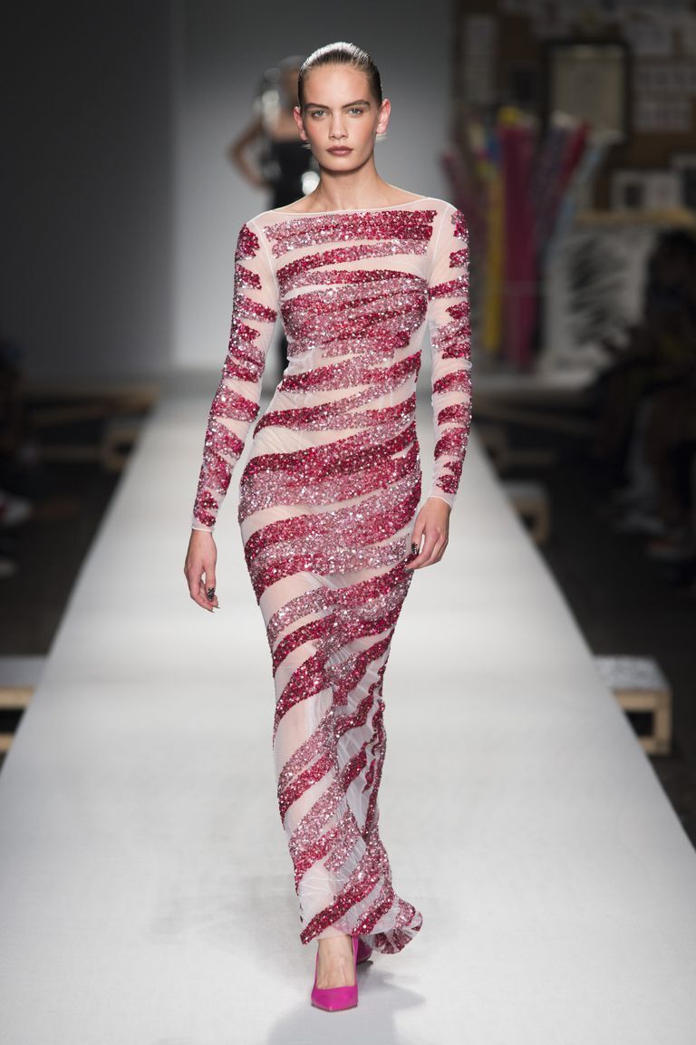 Designer such as Jeremy Scott, wants to have the best models presenting his fashion shows. His favourite beauty is Gigi Hadid, who was the star of the show and performed its perfect conclusion. In the puffball-skirted wedding dress she looked like a delightful cupcake. The dress came with an ethereal train of butterflies and accentuated her beautiful face. Gigi thus represents a modern bride: every woman is free to choose and may wear on her wedding day what she pleases. Even scrawled on stockings!