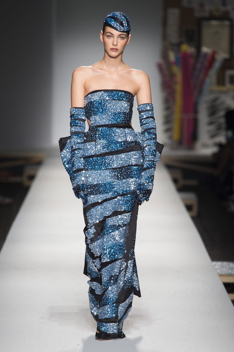 Apart from elegant models, the ready to wear collection also contained more casual pieces, such as luxurious evening gowns which were beautifully decorated, in great detail. Among them also appeared very extravagant, hard-to-overlook models: dresses which looked like giant dressmaking shears, or such of very asymmetric elements. Lovely evening gowns were decorated by a beautiful black lace and looked like for a Barbie doll. In the end, Jeremy used the show to promote his new perfume, Toy 2, which was presented on the catwalk by Kendall Jenner.