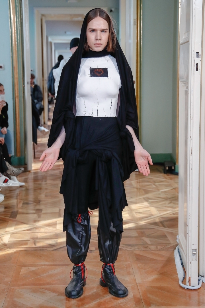 Jan Černý was the author of one of the biggest mistakes. His collection celebrated terrifying spiders with the addition of burkas – these are placed over the head, which is covered by a hood in front with a dense fabric screen. This allows the woman to see, but no one else can glimpse even her eyes. What was this supposed to mean? Are we somewhere in the middle of Afghanistan? Or at a Czech post office as witnesses to a hold-up? I think someone needs to limit their intake of psychotropic substances for breakfast...