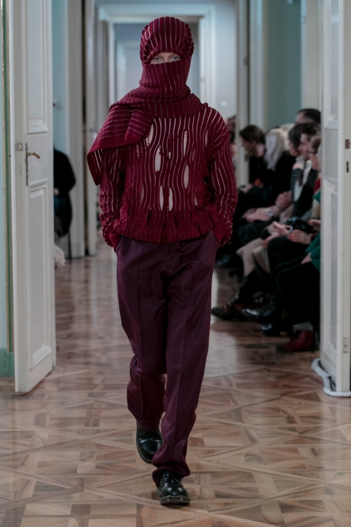 All sorts of balaclavas and pieces of fabric covering the mouth and even the entire face have become the hit of the deluxe FW18 collections. Designers have put these accessories on both ladies and men. The motto of autumn is evidently see nothing and speak nothing, or possibly simple become invisible! This crazy element was incorporated into collections by LAFORMELA in collaboration with Footshop, Jan Černý, Katarína Mydliarová, Adam Kost or the deluxe ODIVI brand.