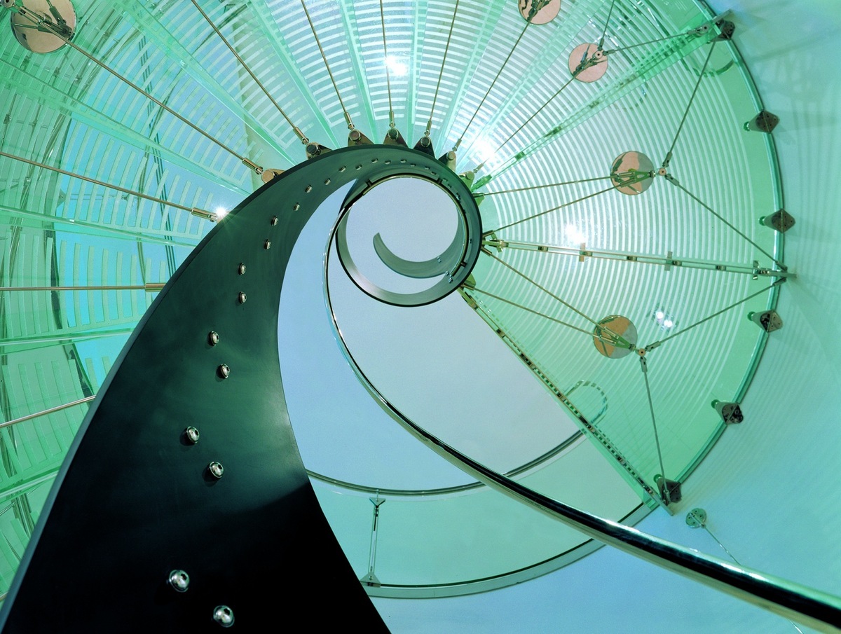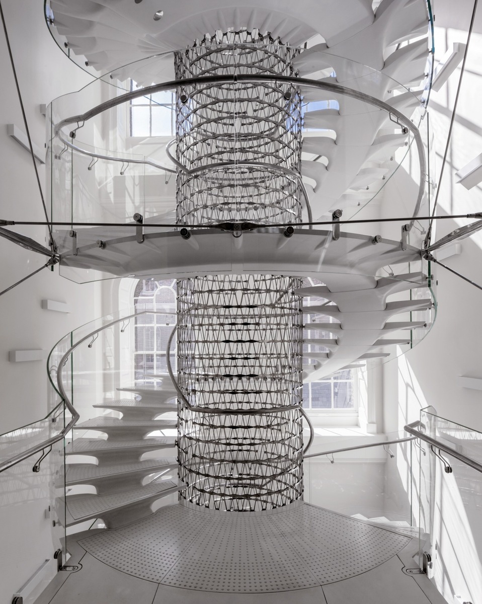 The luxurious spiral staircase by Eva Jiřičná can be admired in the spectacular neoclassical majestic palace Somerset House (Westminster, near Waterloo Bridge). This work shows the architect's natural sense for perfect harmony of the historical spirit with an assortment of modern materials such as steel, concrete and glass.