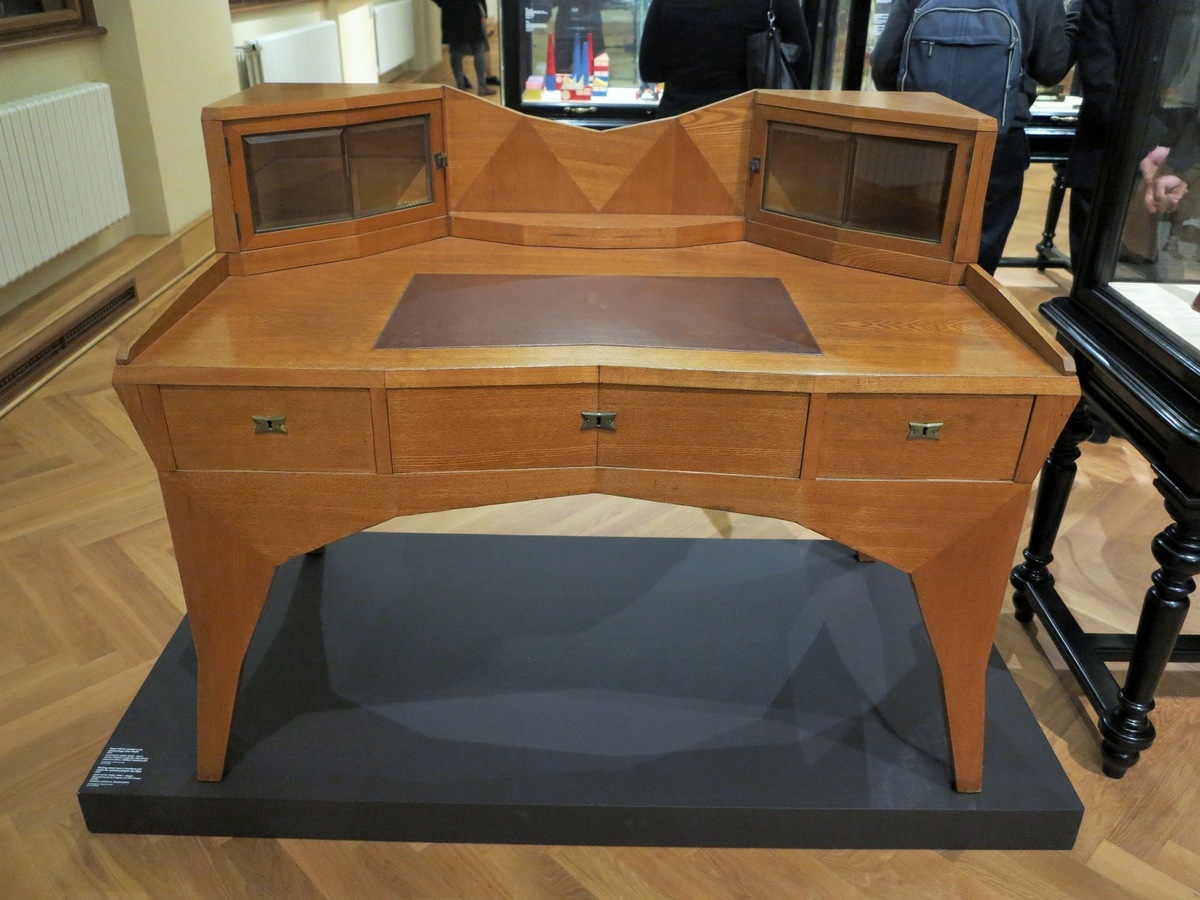 The second room focuses on the 20th century. You can see here period posters and works of graphic art. Cubism is represented here, presented in the medium of ceramics and furniture. You will also find here beautiful clothing from the 20th century and one of the high points is most certainly Josef Gočár’s desk dating back to 1913. You will only recognise what a luxurious work this is on closer inspection!
