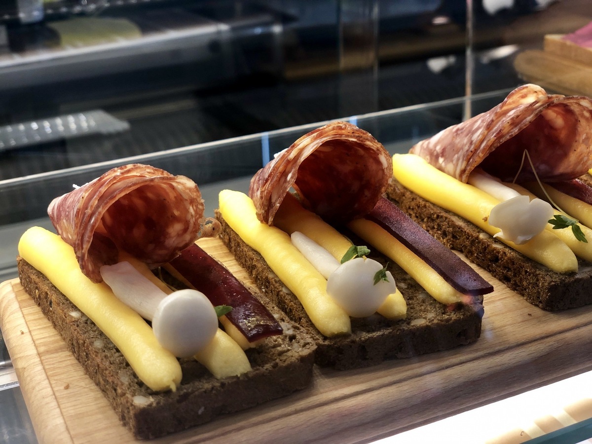 Czech classics? You are totally out of league here. Instead of the classic Czech open sandwiches, from which, for example, I really like the celery sandwich, Michelin extraterrestrials of dubious ingredients looked at me from the shop window.