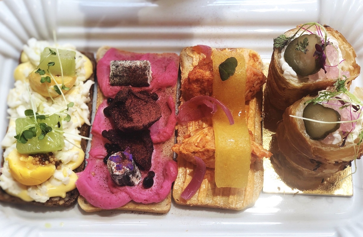 It was quite edible, except for the odd green cucumber cube on top, which, along with the peaches on the “Peach Chicken” sandwich, reminded me that we were living in modern times, and the days when the open sandwich classics were worth something, are gone. I think that with the development of molecular cooking we will soon not care that we eat meat that tastes like a cake and vice versa. Just recently, a dinner tartare that looked like ice cream was served to me at a Prague restaurant for dinner.