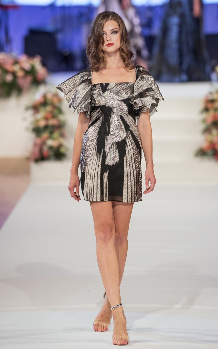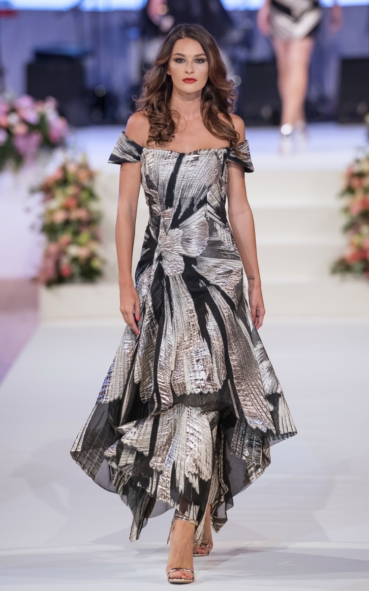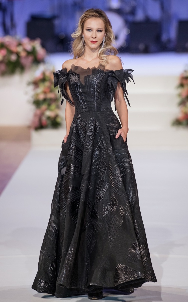 Natali Ruden presented deluxe gowns full of dazzling splendour, elaborate designs and captivating fresh colours, which included purple, fuchsia, gold, silver and indigo. The Alter Ego collection celebrates feminine curves and the deluxe evening gowns, mini-dresses, suits and boiler suits are adorned with deep necklines, sensual cut-outs and naked shoulders – this show has been a real success for Natali Ruden.