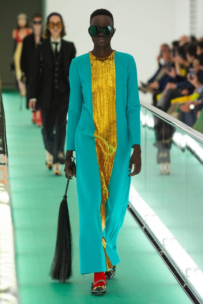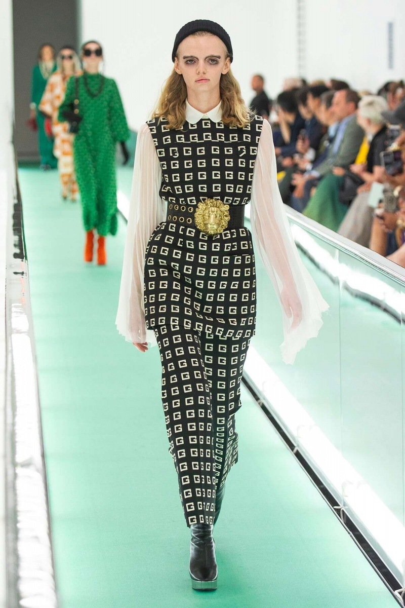 ...looking at some of those models, I feel like running to the for a bottle of Xanax. I'd say Gucci went too wild on the originality, bordering on insanity. Look at this girl, for example.