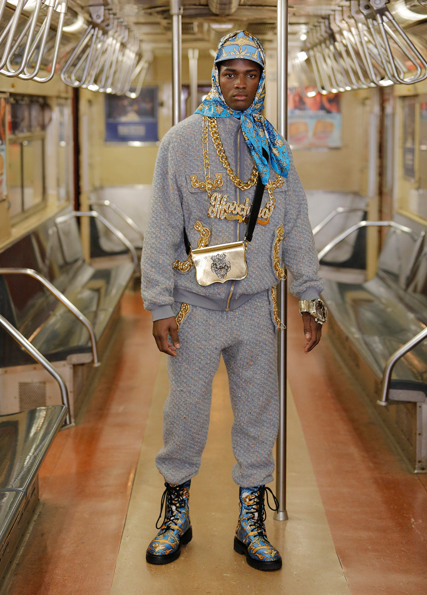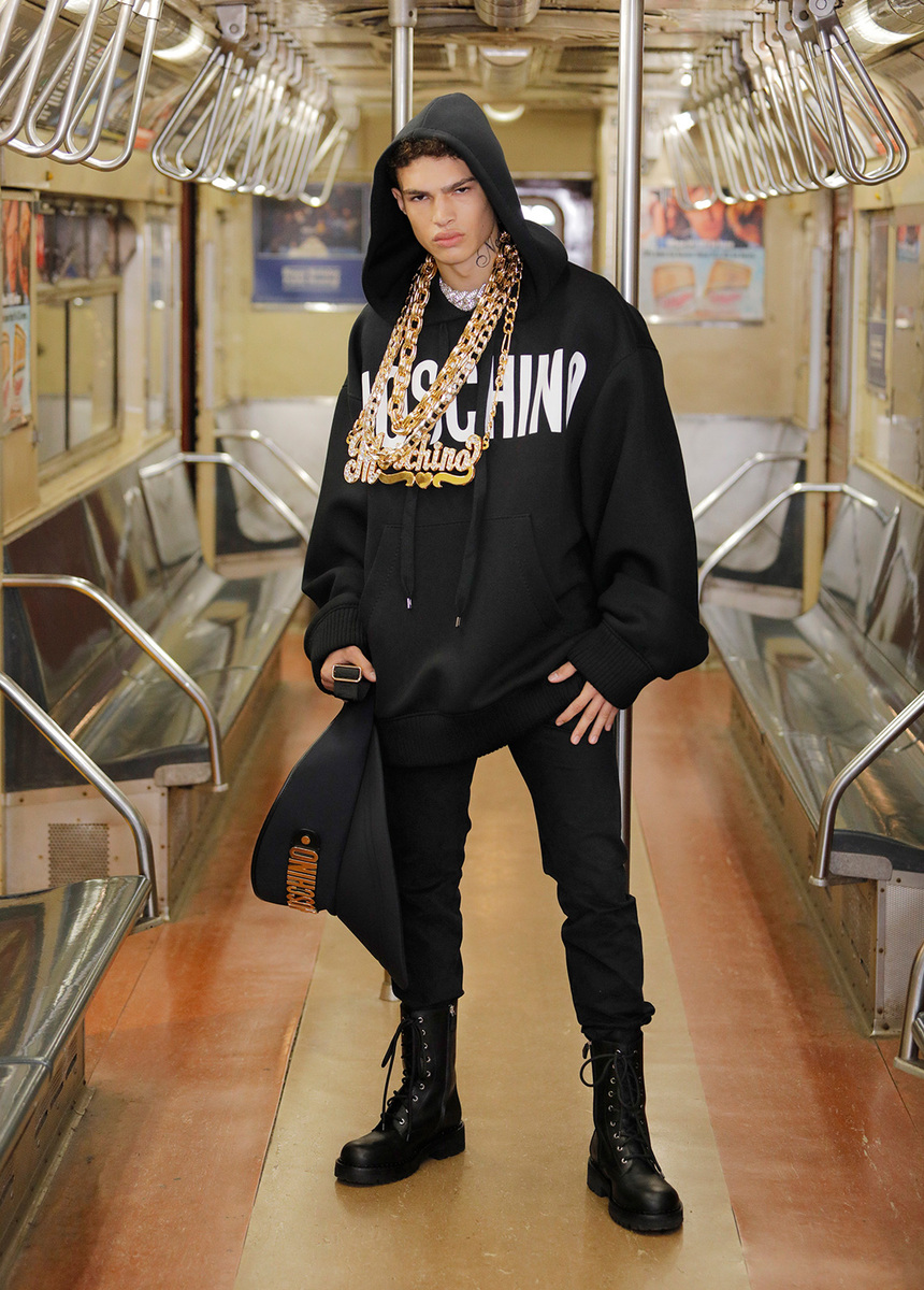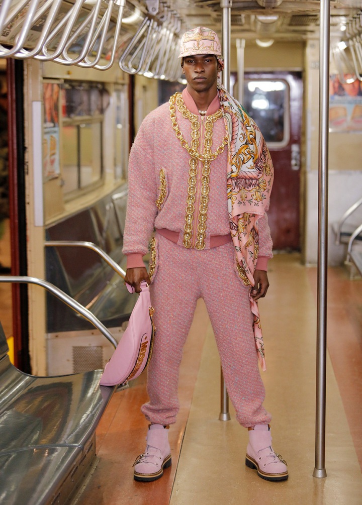 No, the fashion world hasn't gone completely crazy, or at least we hope so. It was only Jeremy Scott, Moschino's creative director, who let his imagination run wild and introduced the new men's Fall 2020 collection to the world in the New York Underground. It features pink, gold chains, even pieces that you might find in your attic.