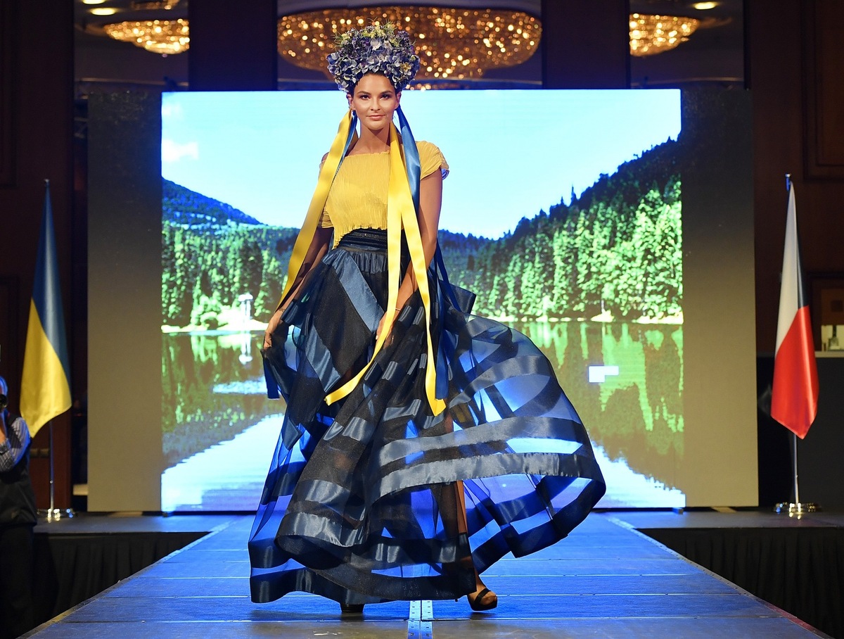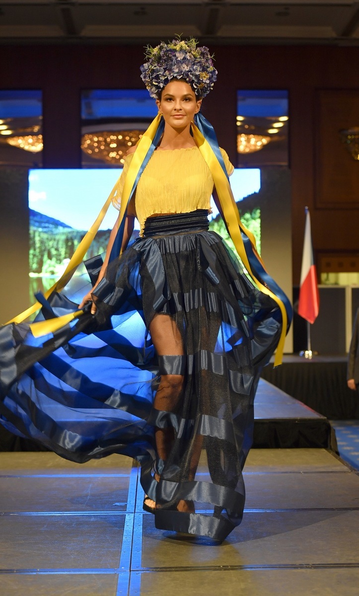 There is no doubt that Natali Ruden is one of the most successful Ukrainians in the Czech Republic. This is one of the reasons why the Embassy of Ukraine asked her to design a special collection for the 28th anniversary of the restoration of Ukrainian independence. Natali Ruden decided to get inspired by the nature, culture and traditions of her native Ukraine and presented a collection of 30 women's and 3 children's models at the luxurious Hilton hotel.