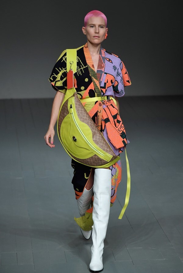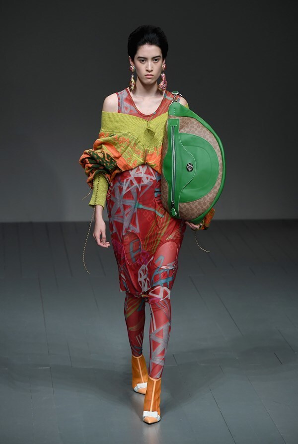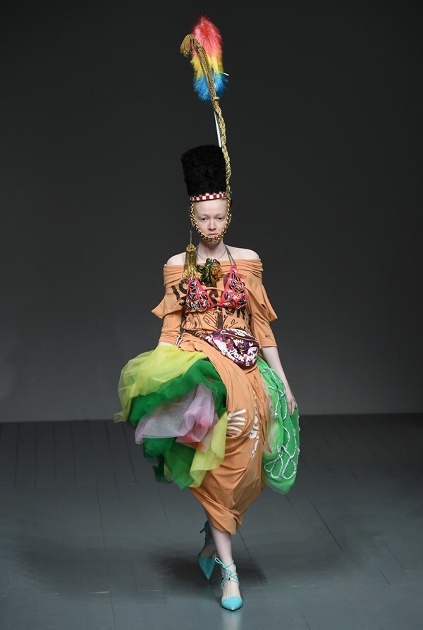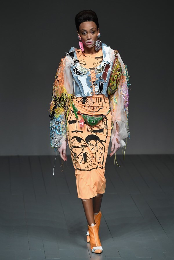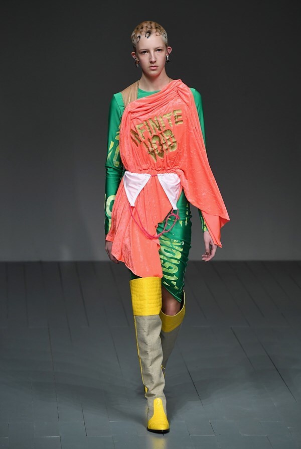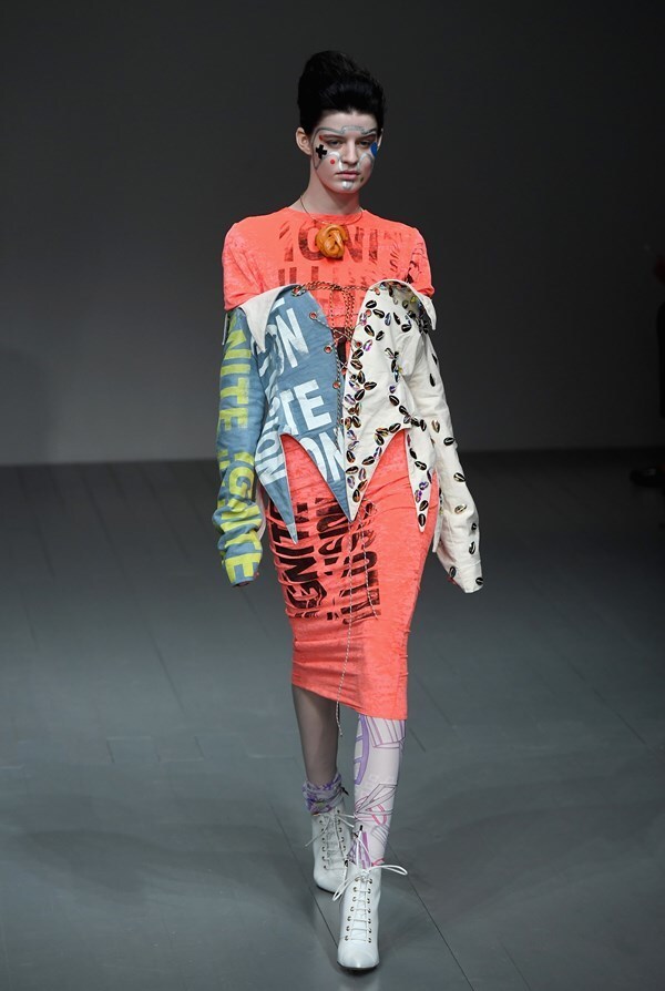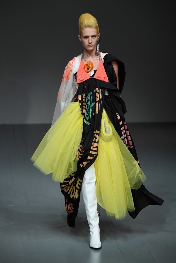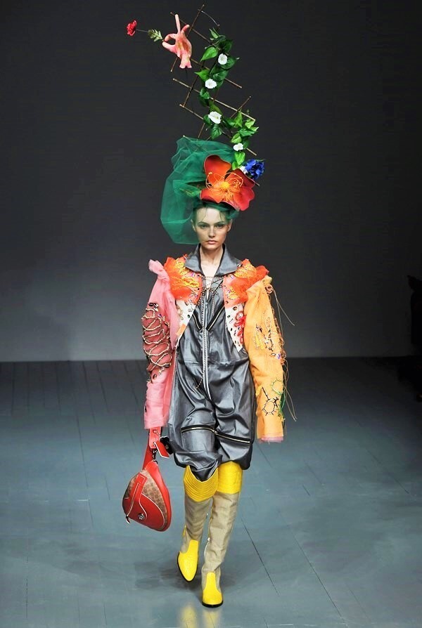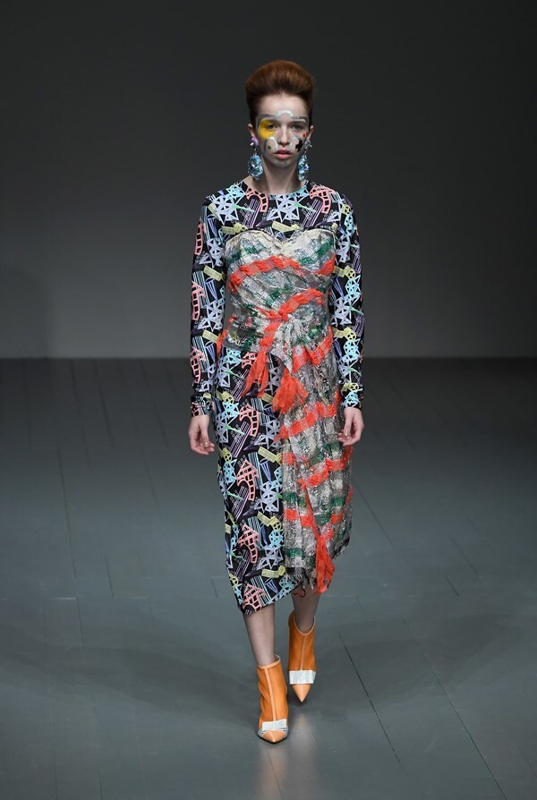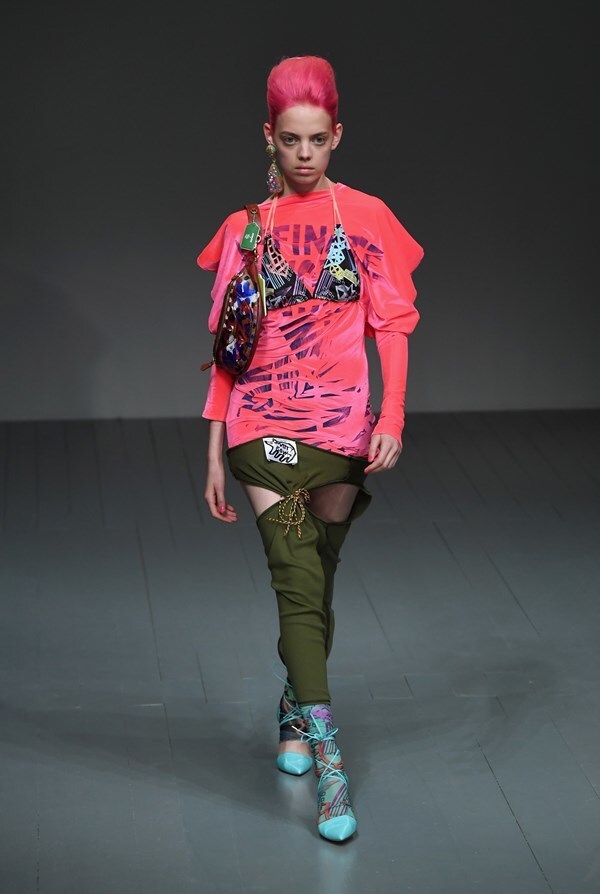 A jungle of colours, sharp silhouettes, non-traditional materials and striking graphics will draw attention straight away, forcing you to ponder: "What does Matty Bovan actually want to say?"